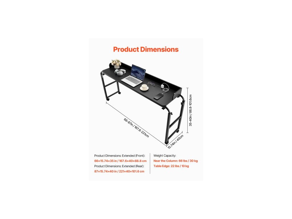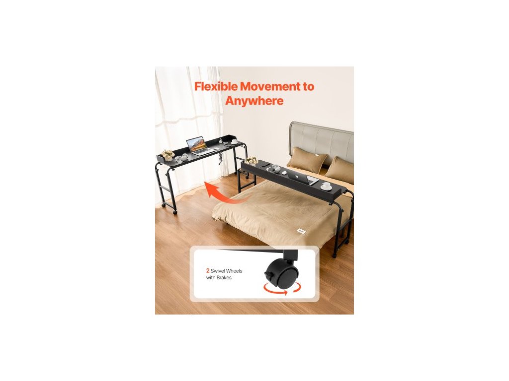 stolek nad postel, mobilní odkládací stolek se 4 kolečky (2 s brzdami) a zásuvkou, výškově nastavitelný pojízdný stůl na notebook, přenosný stůl nad postel z dřevotřísky pro domácnost, kancelář, studovnu, černýNastavitelný stůl nad postel