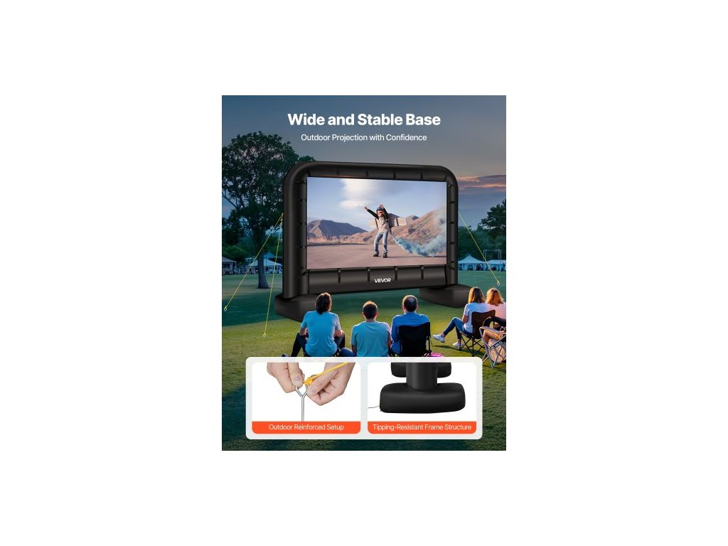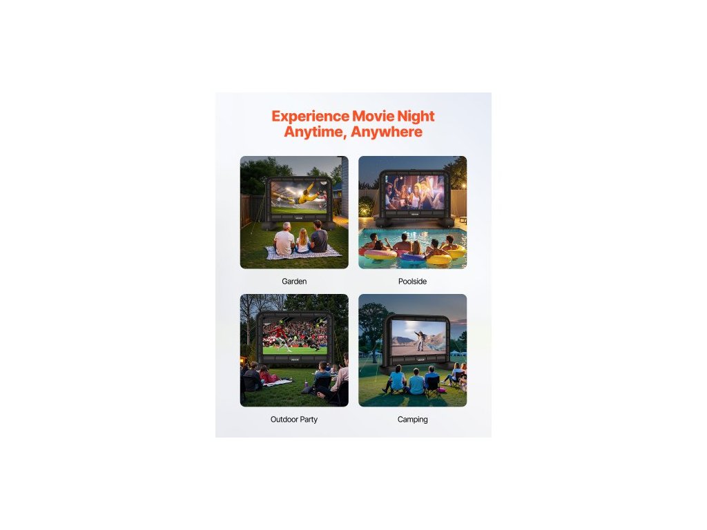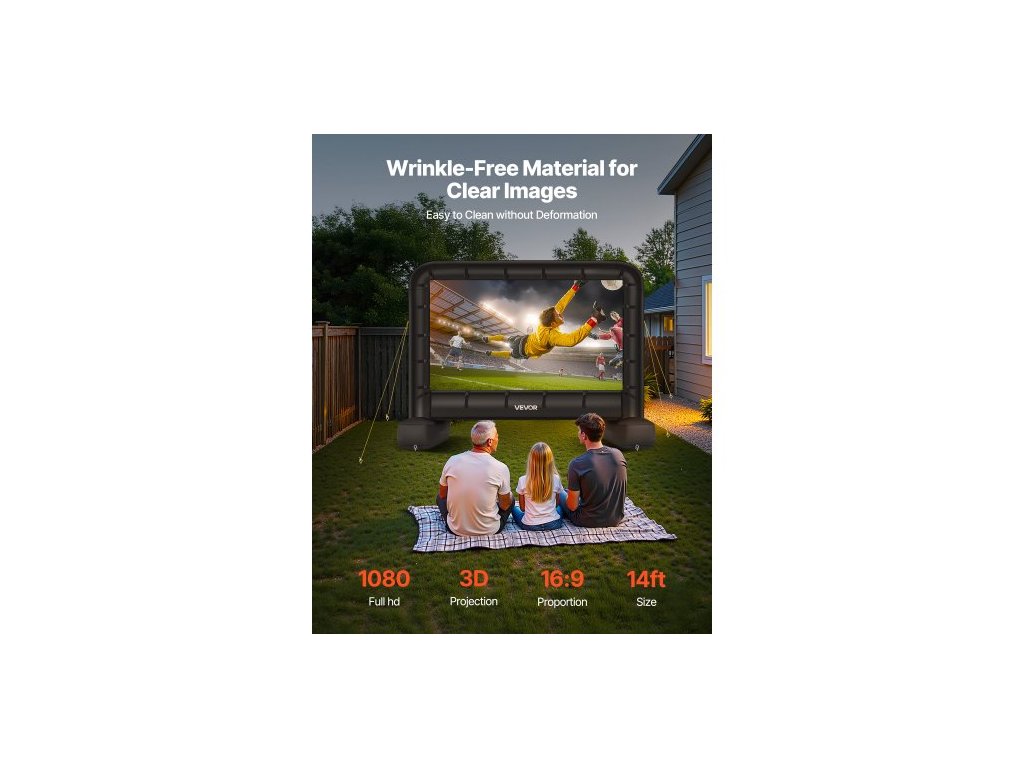 Nafukovací filmové plátno 14 stop, omyvatelné nafukovací projekční plátno z 600D s přenosným úložným vakem, snadno sestavitelné promítání filmů 16:9 pro venkovní použití na zahradu, domácí kino, tematickou párty, zábavu u bazénuNemačkavý materiál