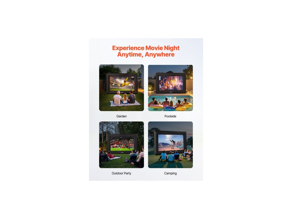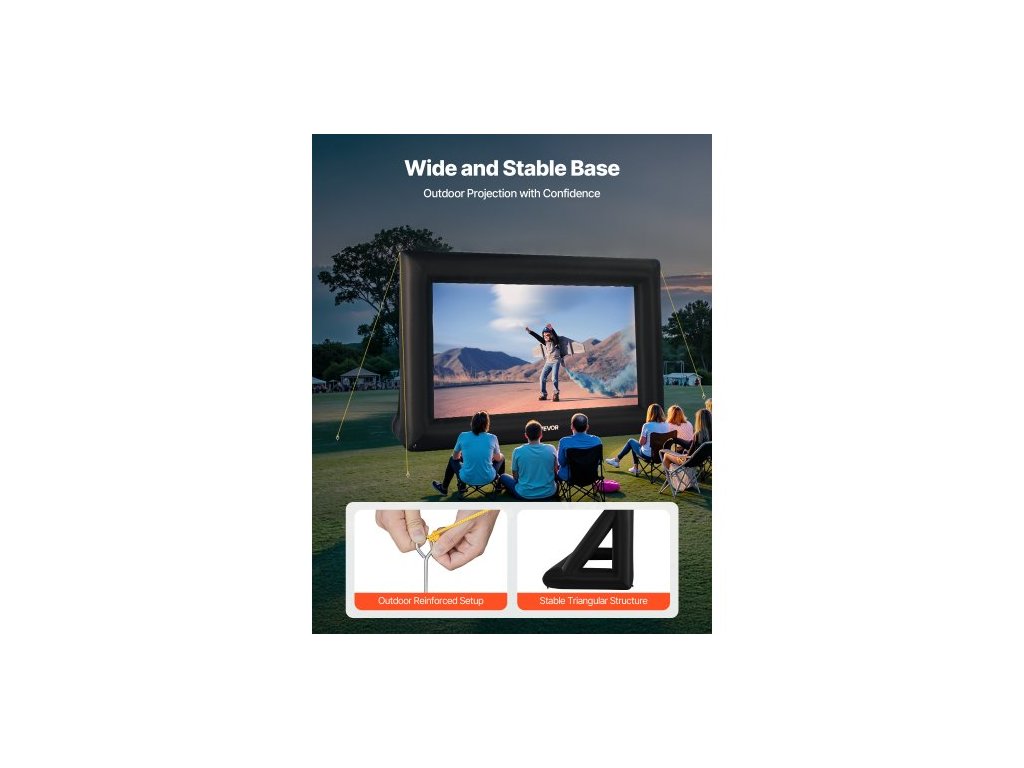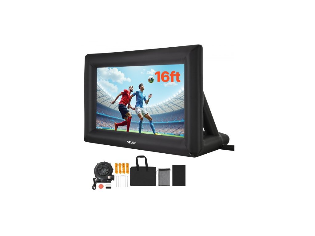 Nafukovací filmové plátno 16 stop, omyvatelné nafukovací projekční plátno z 600D s přenosným úložným vakem, snadno sestavitelný filmový projektor 16:9 pro venkovní použití na zahradě, domácím kině, tematickou párty, zábavu u bazénuNemačkavý materiál