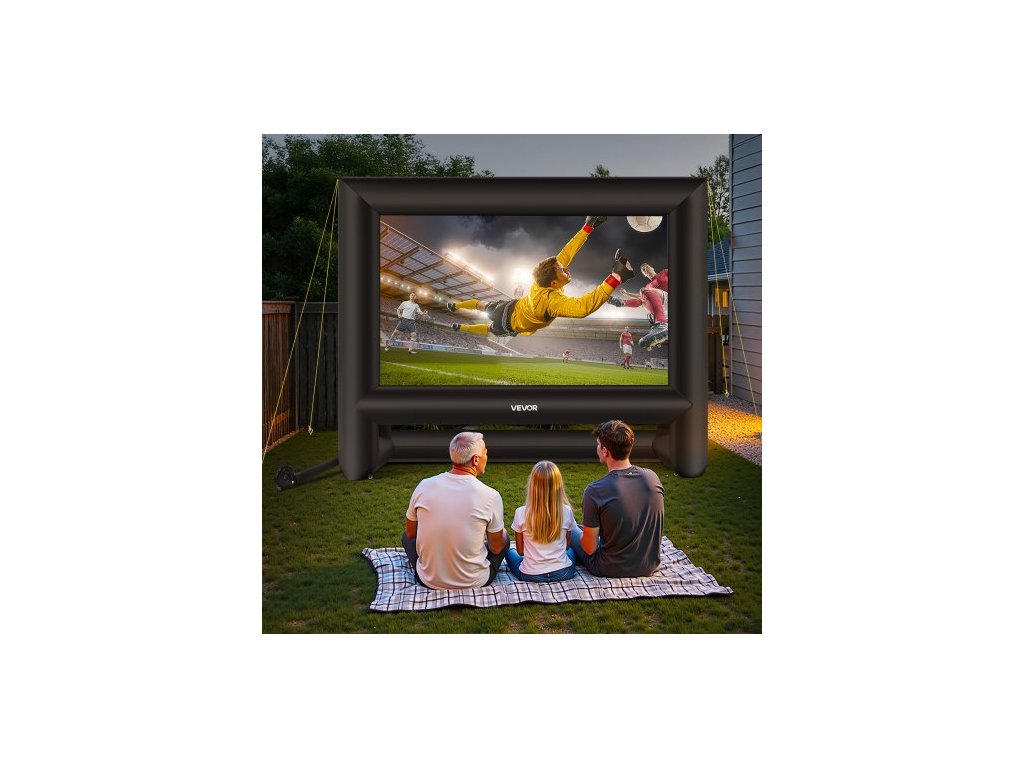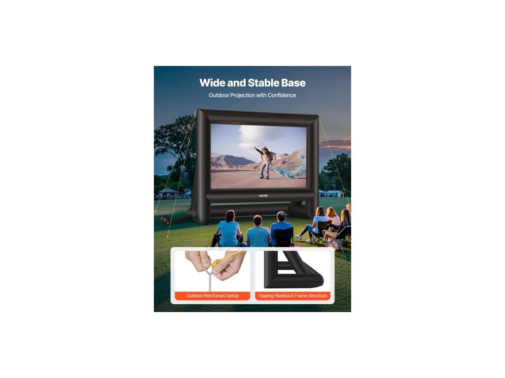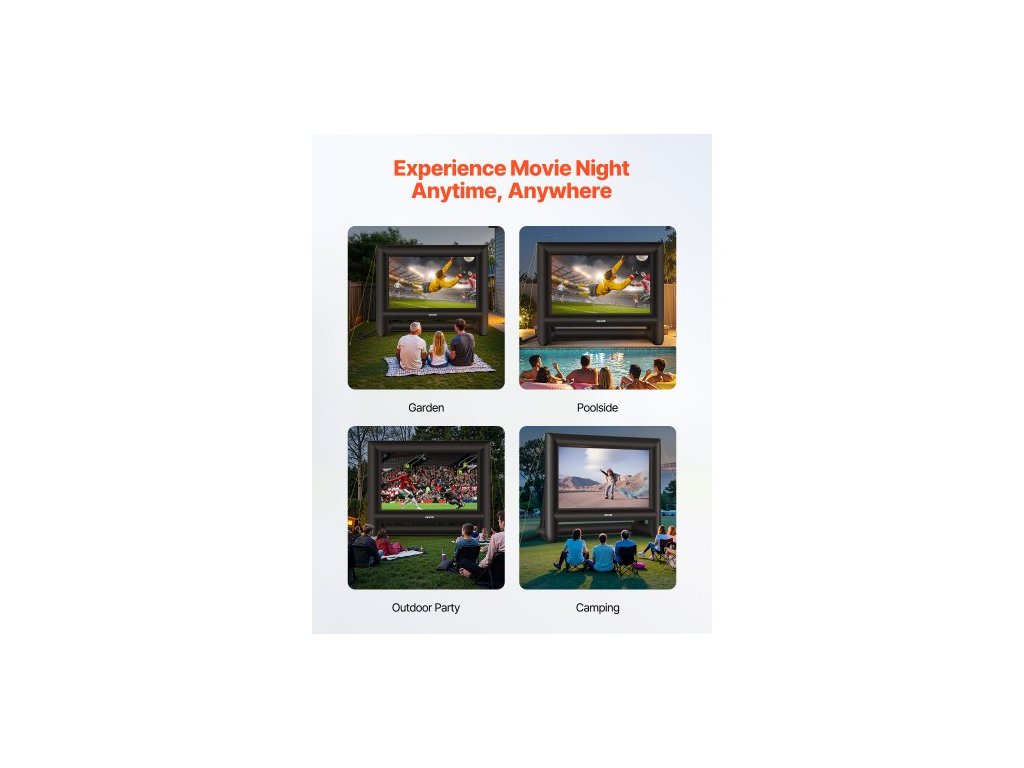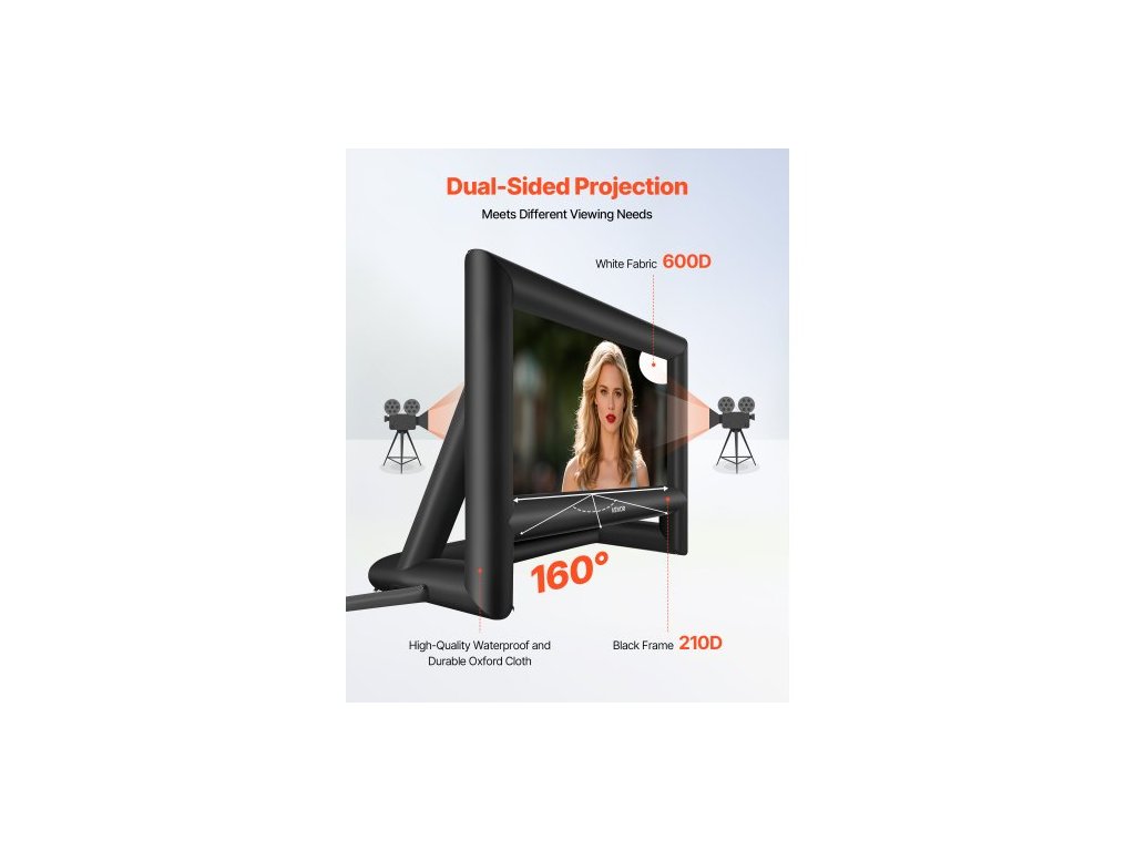 Nafukovací filmové plátno 18 stop, omyvatelné nafukovací projekční plátno z 600D s přenosným úložným vakem, snadno sestavitelná filmová projekce 16:9 pro venkovní zahradu, domácí kino, tematickou párty, zábavu u bazénuNemačkavý materiál