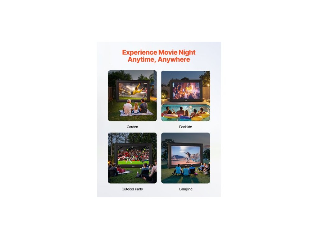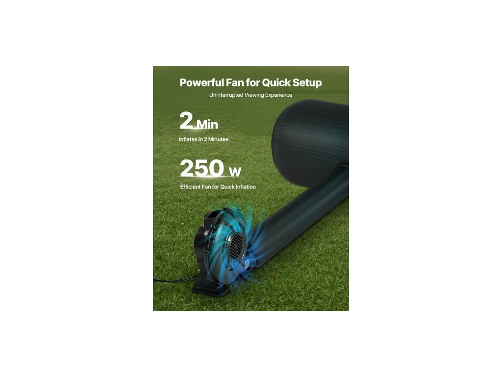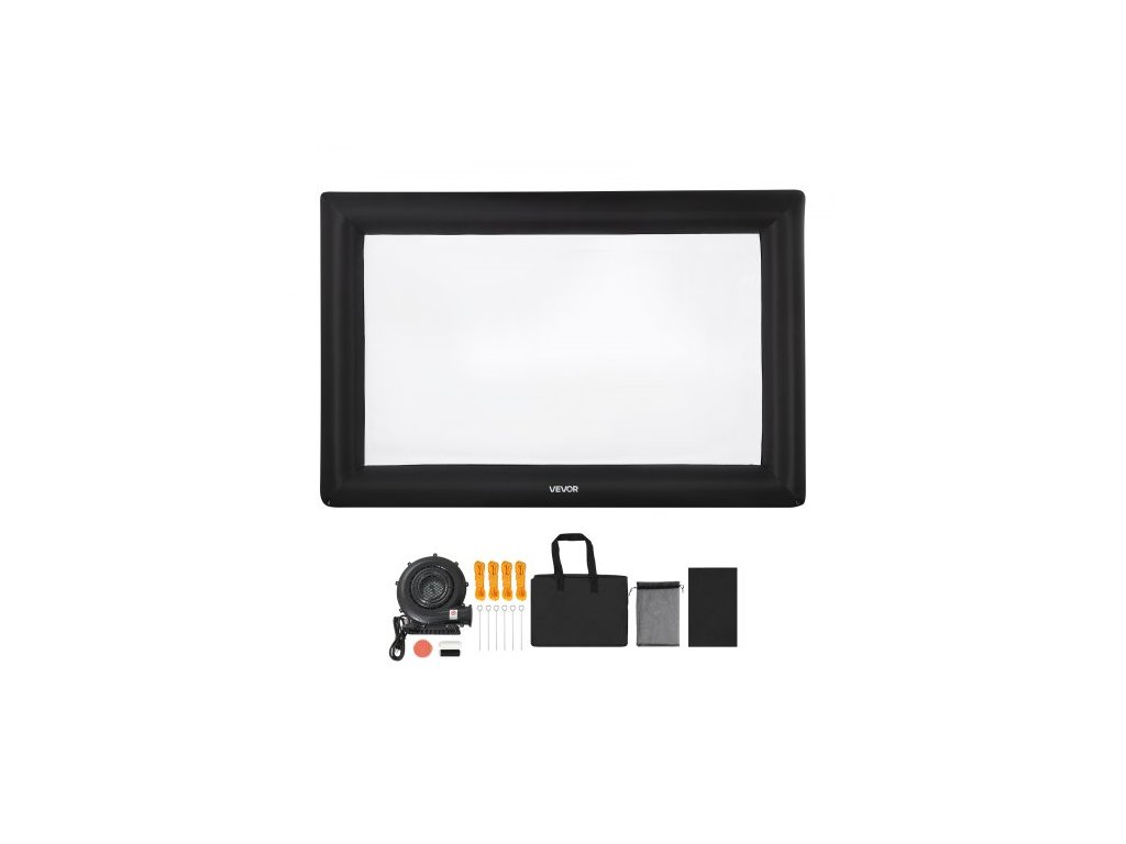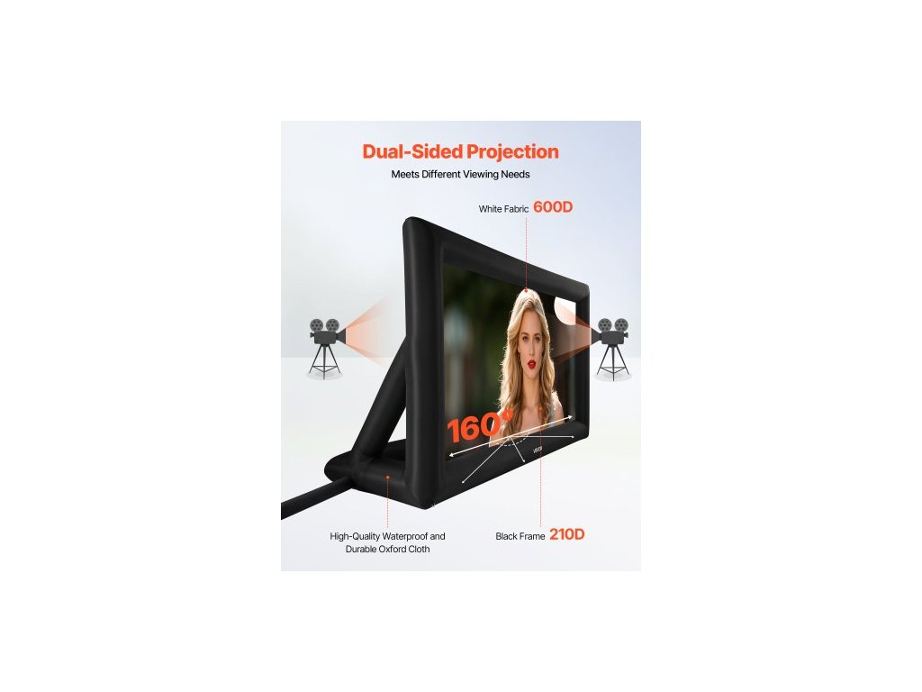 Nafukovací filmové plátno 20 stop, omyvatelné nafukovací projekční plátno z 600D s přenosným úložným vakem, snadno sestavitelný filmový projektor 16:9 pro venkovní použití na zahradu, domácí kino, tematickou párty, zábavu u bazénuNemačkavý materiál
