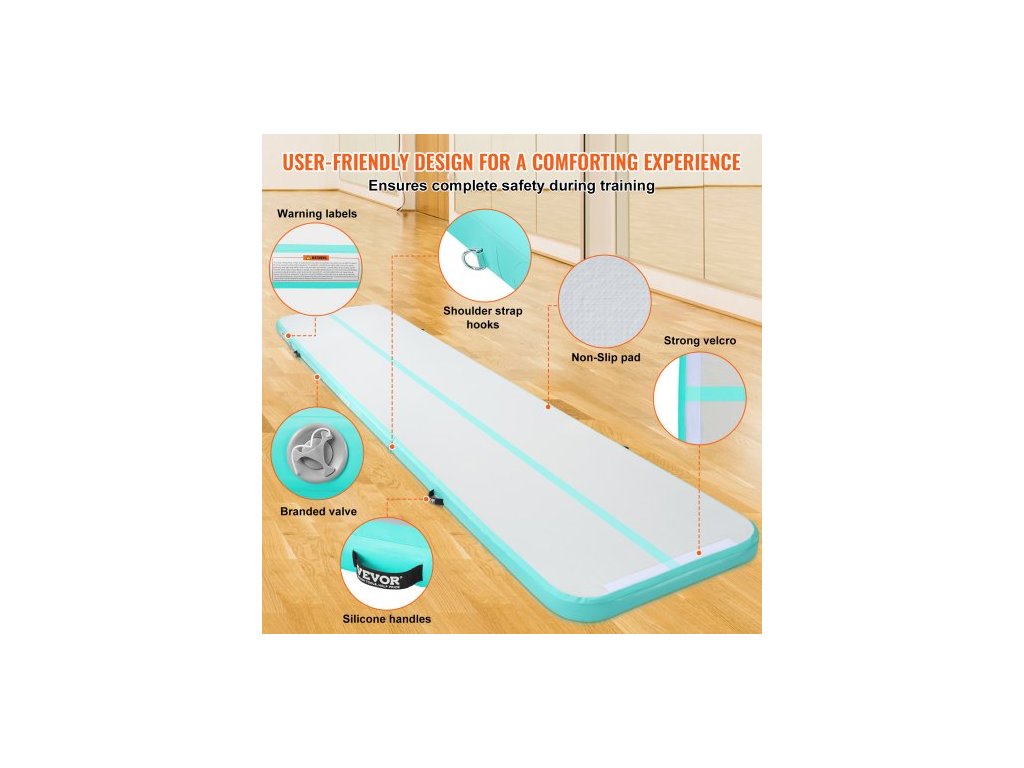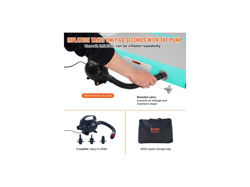 Nafukovací gymnastická podložka 4,9 m s pumpouVysoce kvalitní nafukovací gymnastická podložka
