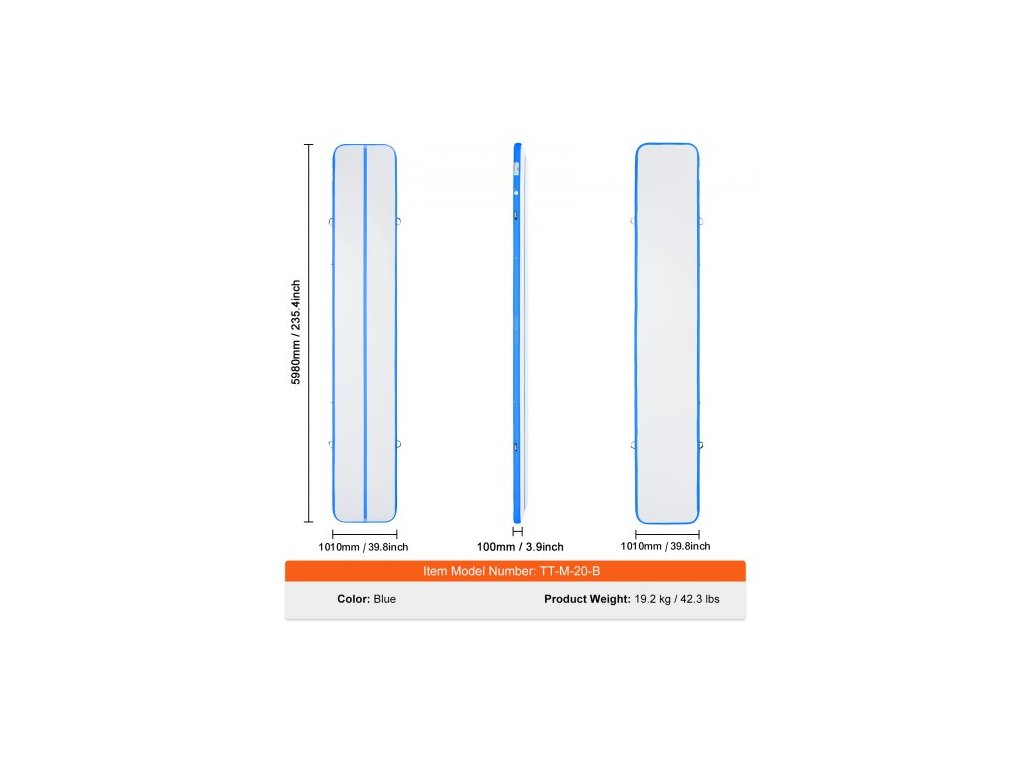 Barva: Modrá,Číslo modelu položky: TT-M-20-B,Rozměry: 5980x1010x100 mm / 235,4x39,8x3,9 palce,Hmotnost výrobku (včetně veškerého příslušenství): 19,2 kg / 42,3 lbs
