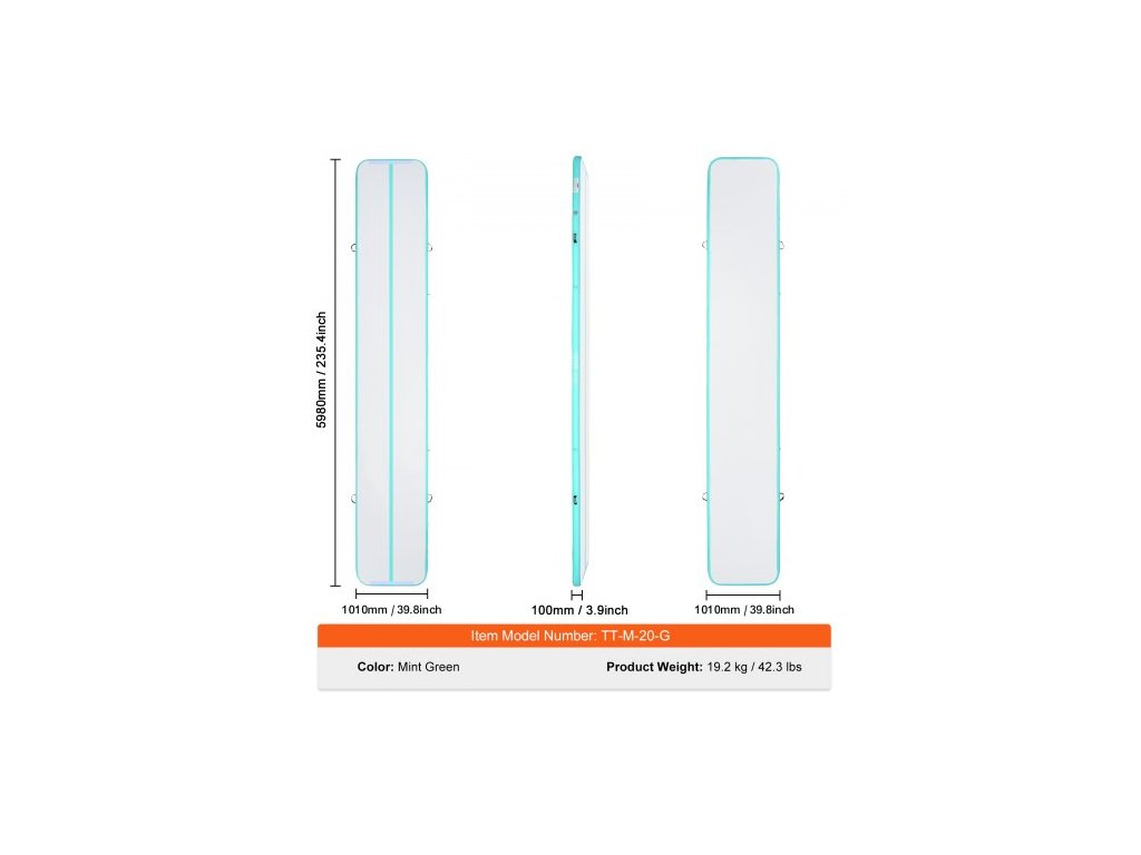 Barva: Zelená,Číslo modelu položky: TT-M-20-G,Rozměry: 5980x1010x100 mm / 235,4x39,8x3,9 palce,Hmotnost výrobku (včetně veškerého příslušenství): 19,2 kg / 42,3 lbs
