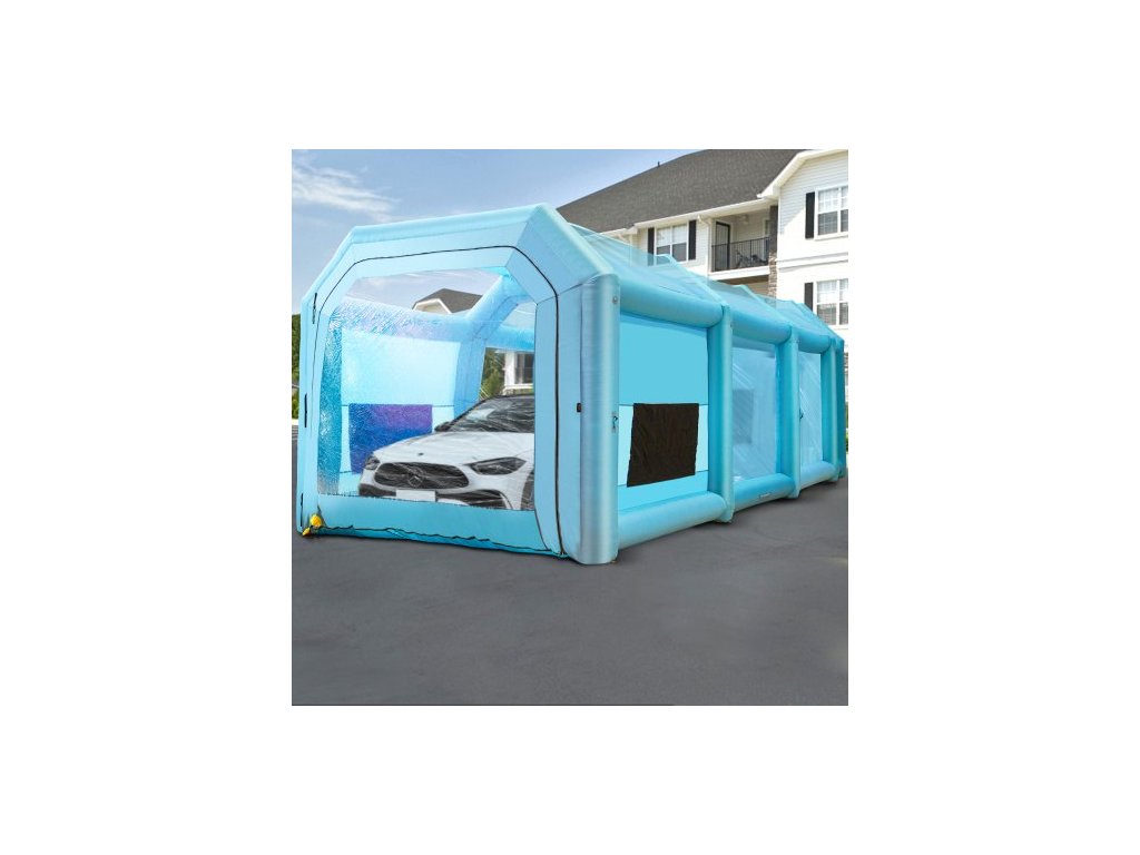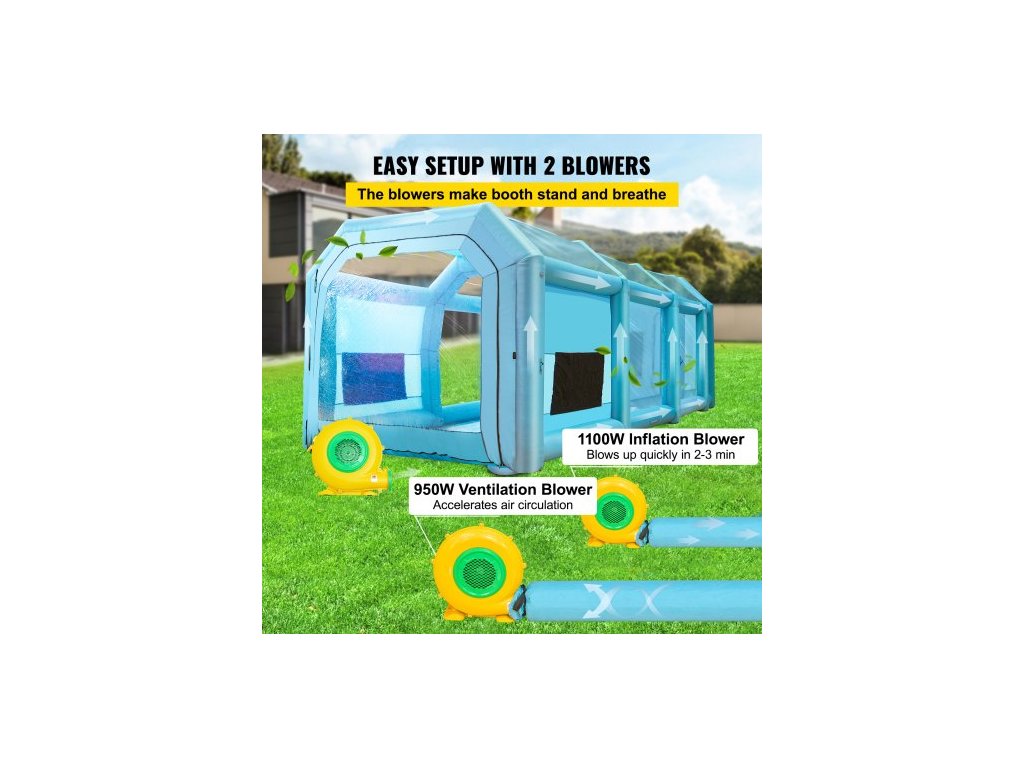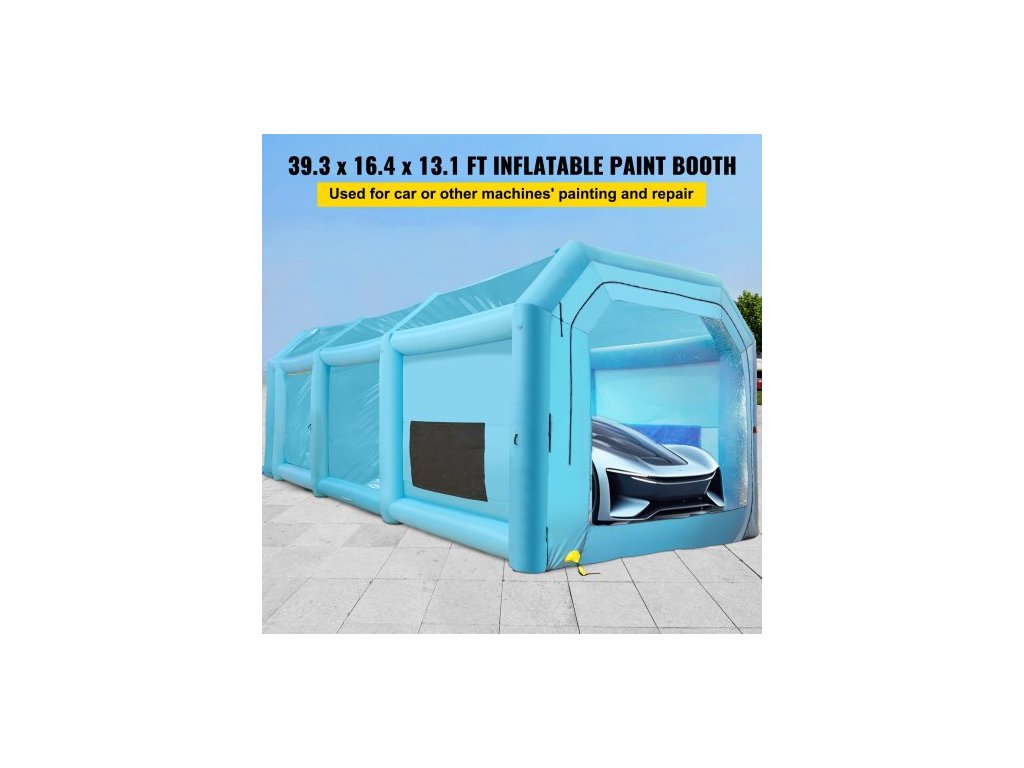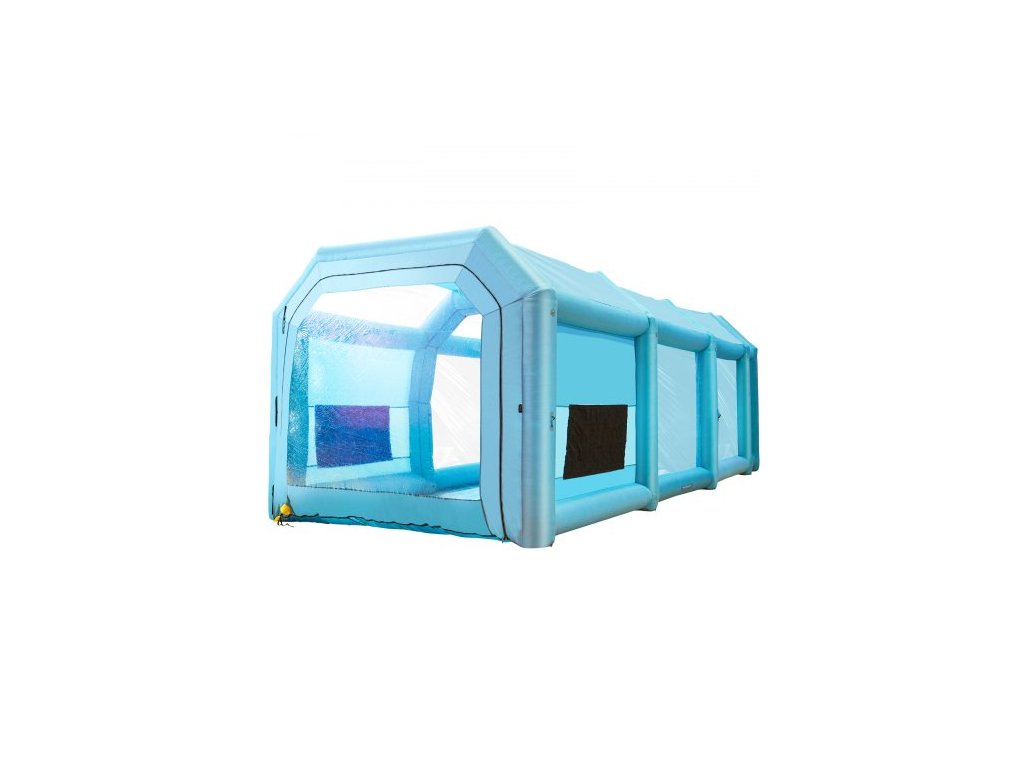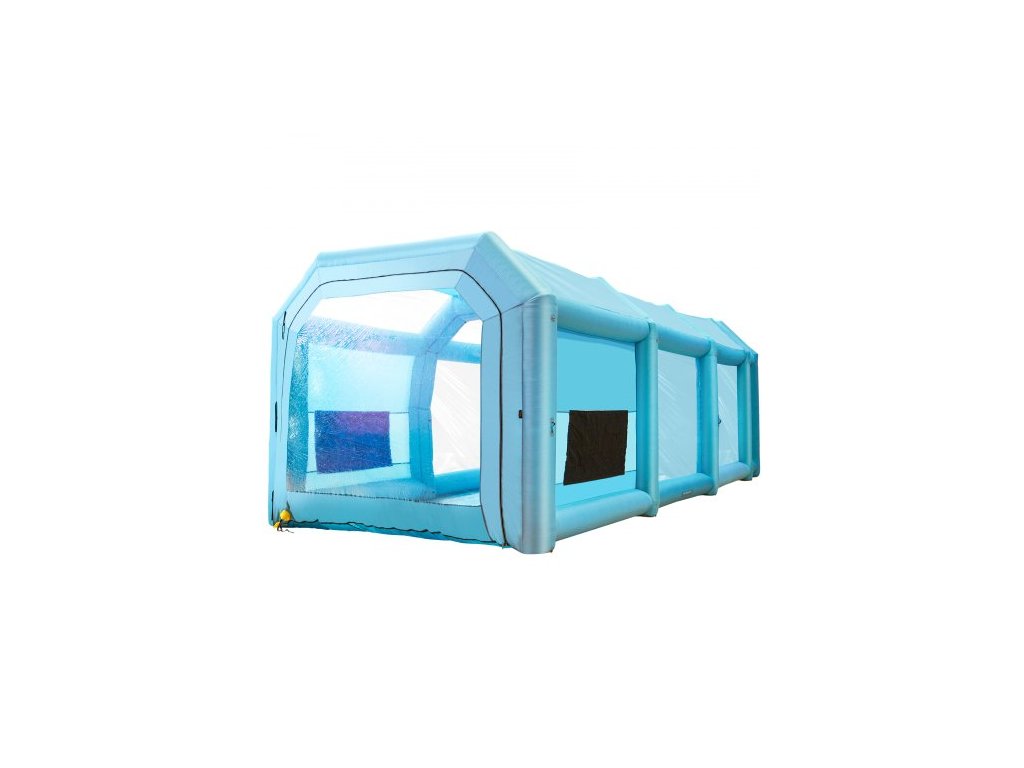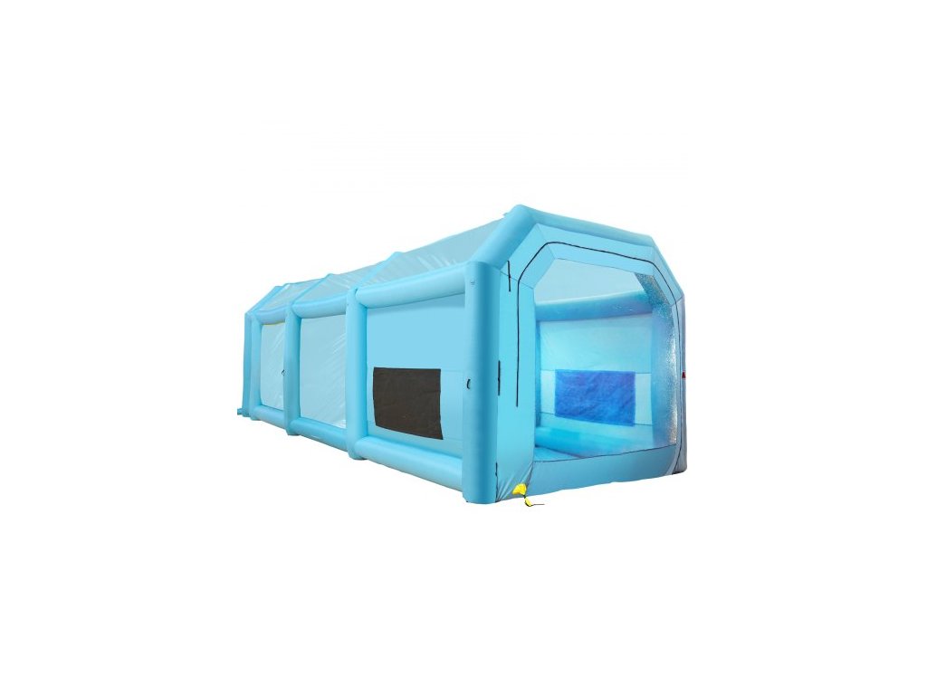 Nafukovací lakovací kabina , 11,4 x 4,8 x 3,9 m, s 2 výkonnými ventilátory, nafukovací lakovací kabina se systémem vzduchového filtru, lakovací kabina pro parkovací stany, modrá