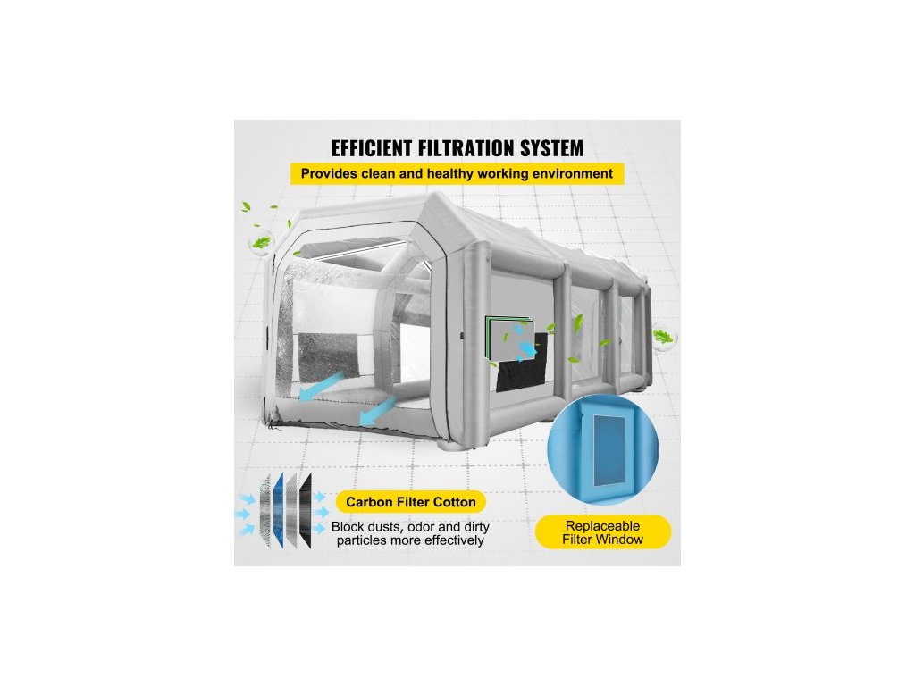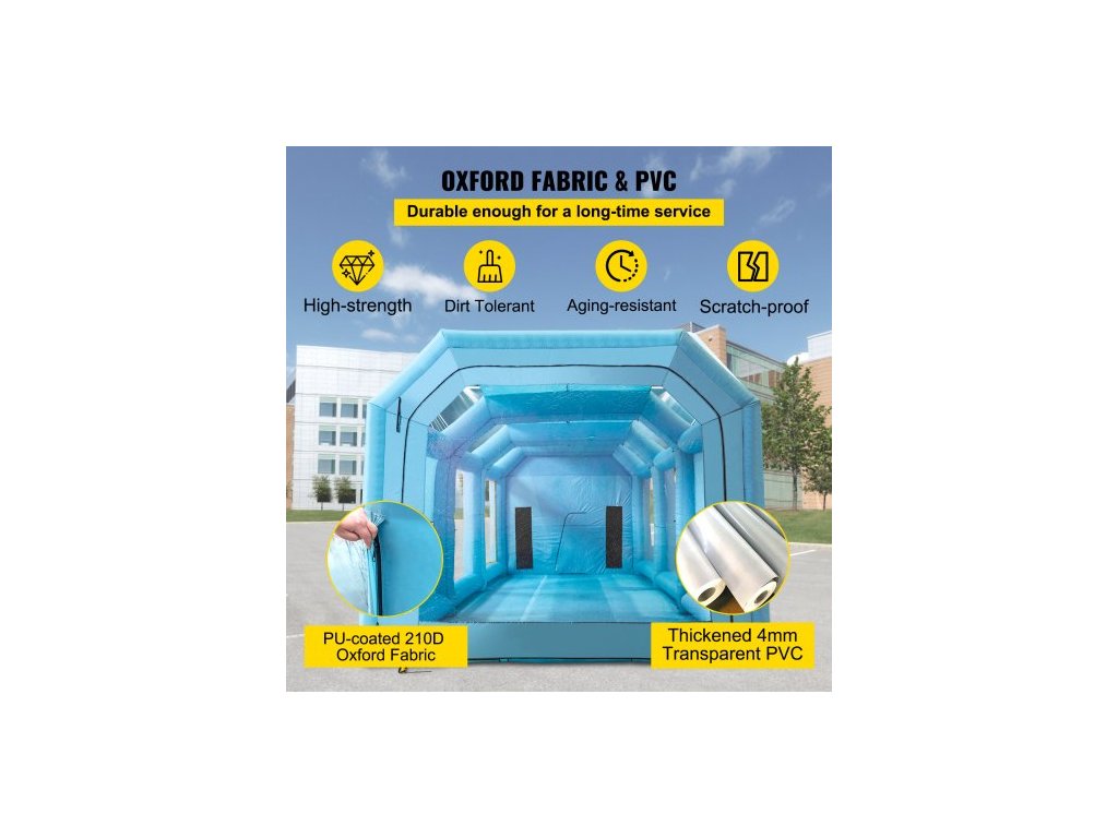 Nafukovací lakovací kabina , stříkací kabina 39,4x16,4x13,1 stop, se 2 výkonnými ventilátory, nafukovací stříkací kabina se systémem vzduchového filtru, lakovací kabina pro pracovní stanici parkovacího stanu, modráVysoce pevná oxfordská tkanina a PVC