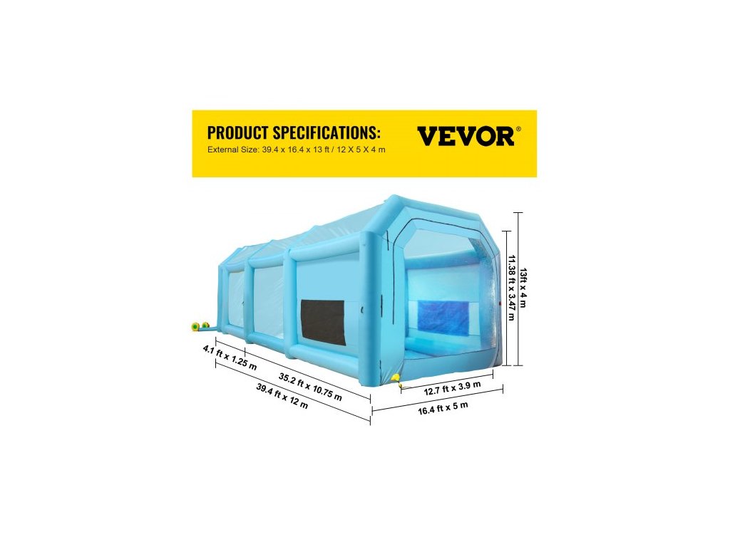 Výkon ventilátoru: 950 W, Výkon ventilátoru: 1100 W, Barva: Modrá, Číslo modelu položky: PQZP-9855, Materiál: Oxfordská tkanina 210D, PVC, Vnější prostor: 39,4 x 16,4 x 13,1 stop/12 x 5 x 4 m, Rozměry pracovní místnosti: 35,2 x 12,7 x 11,38 stop/ 10,75 × 3,9 × 3,47 m