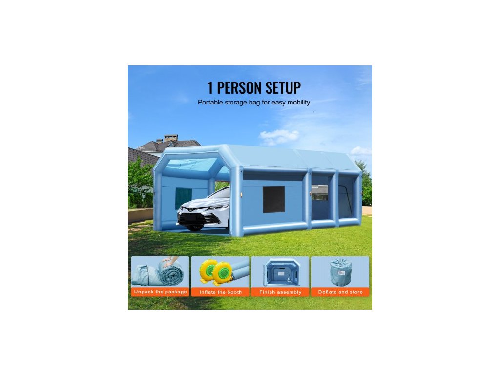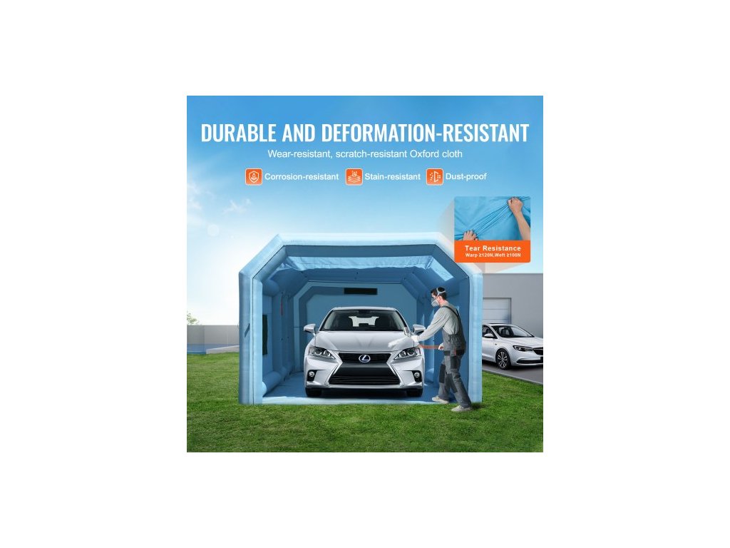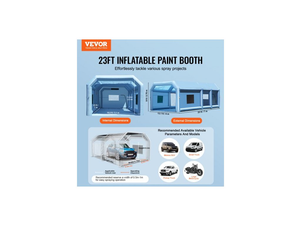 Nafukovací lakovací kabina , 23 x 13,1 x 9 stop / 7 x 4 x 2,7 m, s výkonnými ventilátory 750 W + 480 W a systémem vzduchového filtru, přenosná lakovací kabina pro malé nákladní vozy, velké motocykly a středně velké SUVBezkonkurenční zážitek z lakování