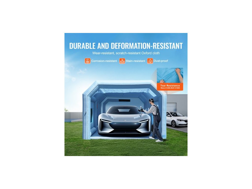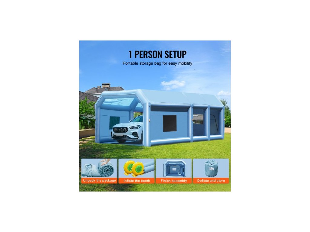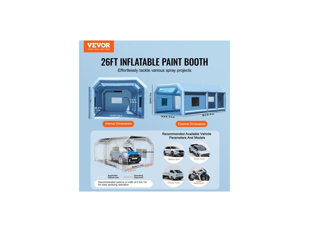 Nafukovací lakovací kabina , 26,2 x 14,8 x 9,8 stop / 8 x 4,5 x 3 m, nafukovací stříkací kabina s výkonnými ventilátory 950 W + 750 W a systémem vzduchového filtru, přenosná lakovací kabina pro malé nákladní vozy, velké motocykly a středně velké SUVBezkonkurenční zážitek z lakování