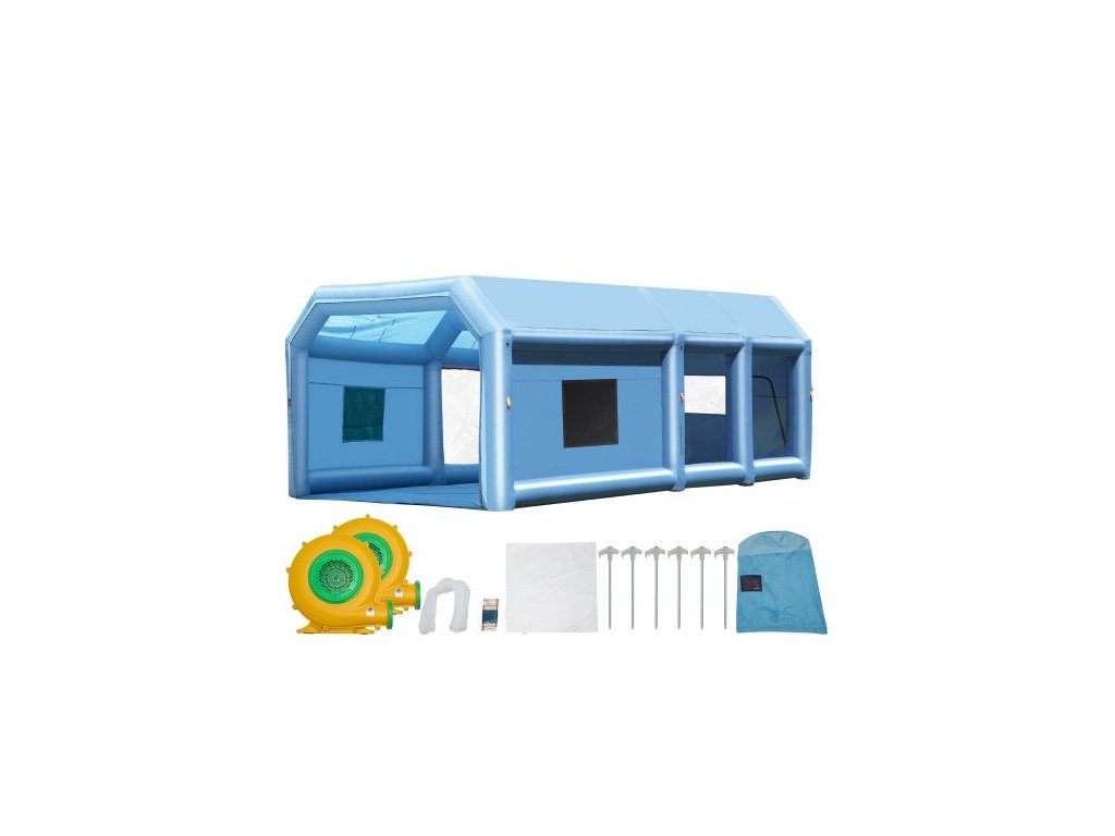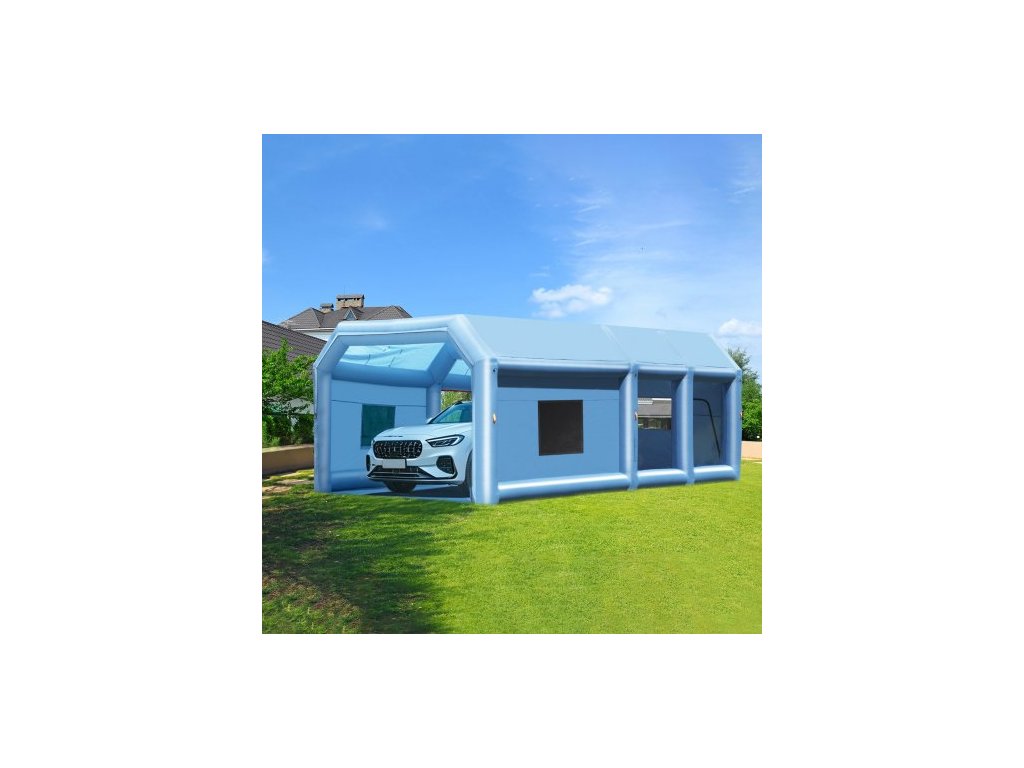 Nafukovací lakovací kabina , 26,2 x 14,8 x 9,8 stop/8 x 4,5 x 3 m, s výkonnými ventilátory 950 W + 750 W a systémem vzduchového filtru, přenosná lakovací kabina pro malé nákladní vozy, velké motocykly a středně velké SUV