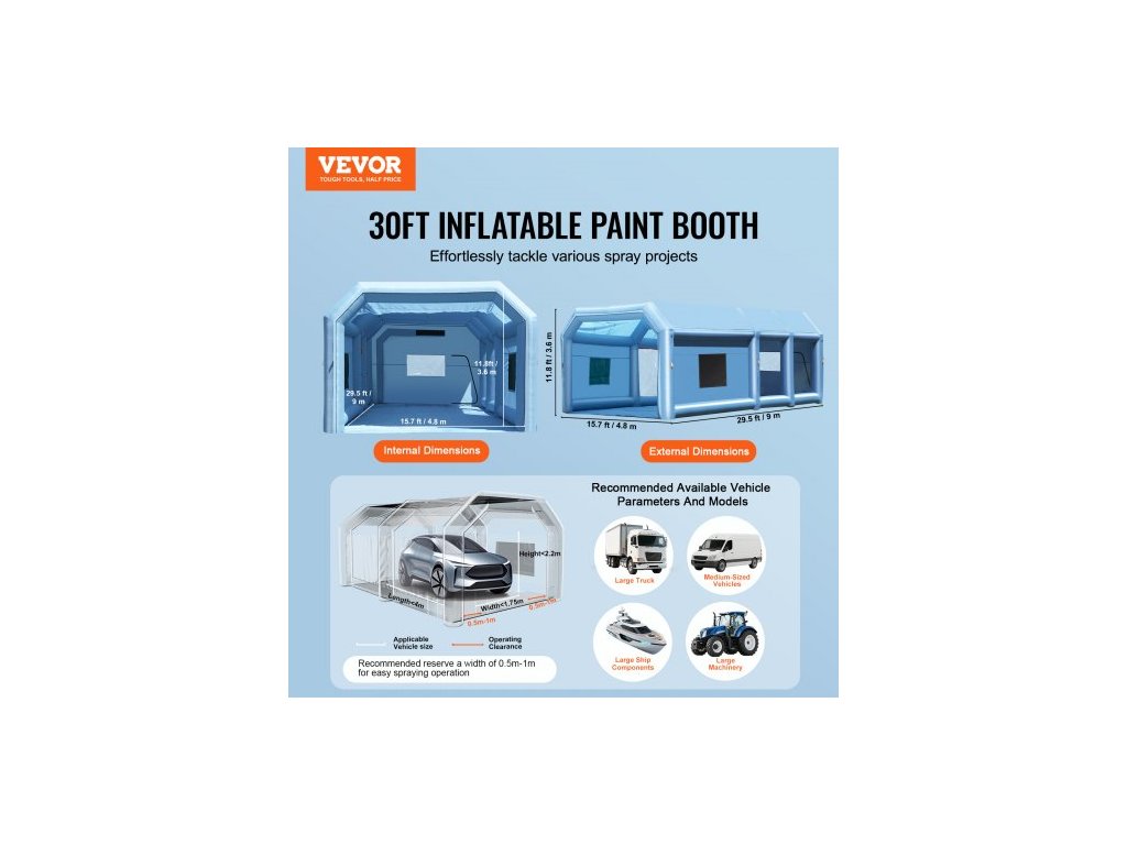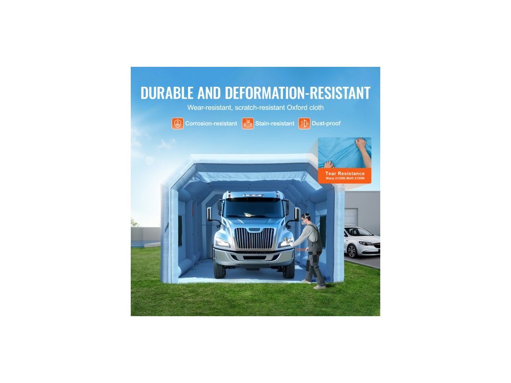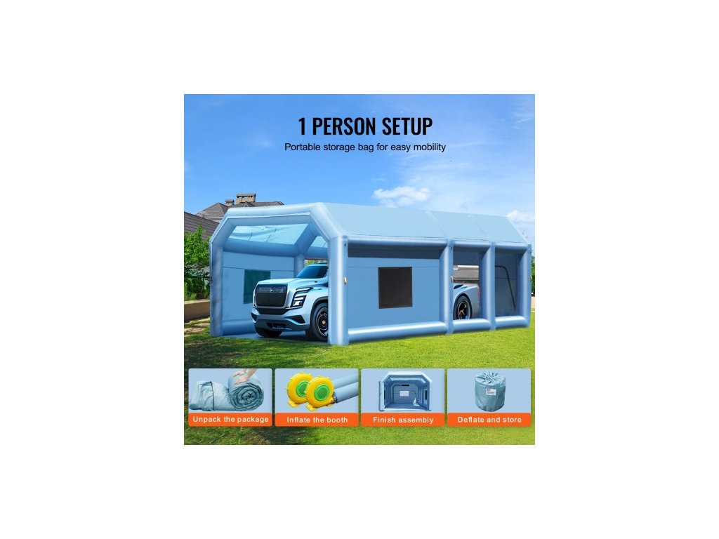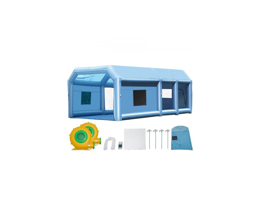 Nafukovací lakovací kabina , 29,5 x 15,7 x 11,8 stop / 9 x 4,8 x 3,6 m, s výkonnými ventilátory 950 W + 750 W a systémem vzduchového filtru, přenosná lakovací kabina pro velké nákladní automobily, velké dodávky a velké strojeBezkonkurenční zážitek z lakování