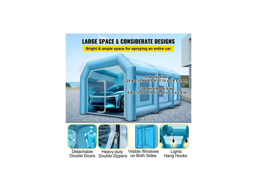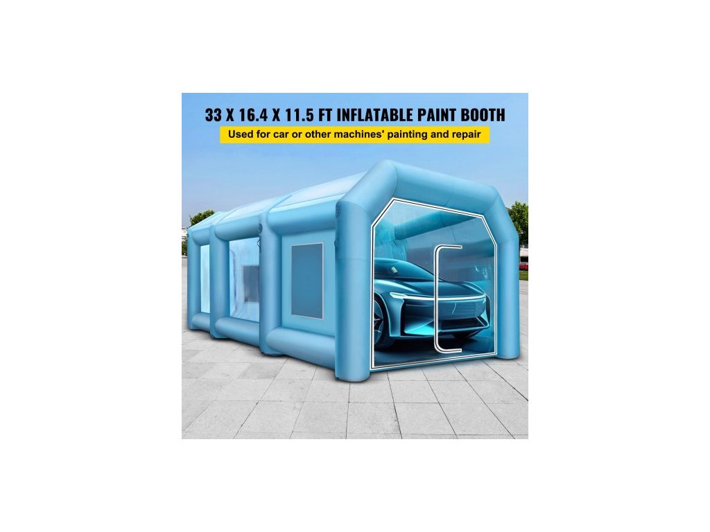 Nafukovací lakovací kabina 33x16,4x11,5 stop, Nafukovací kabina se 2 ventilátory, Nafukovací stříkací kabina s filtračním systémem, Přenosná lakovací kabina pro automobily, pracovní stanice pro stany a parkovací stání