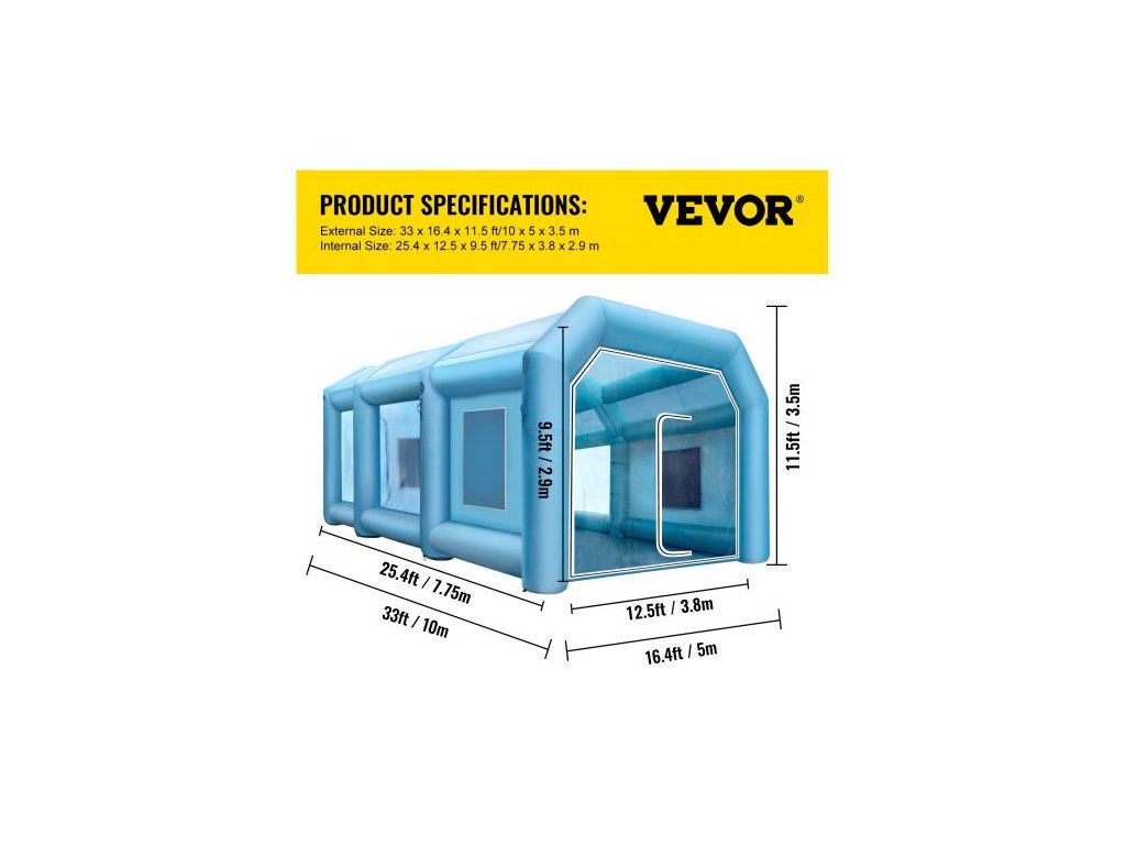 Nafukovací lakovací kabina 33x16,4x11,5 stop, Nafukovací kabina se 2 ventilátory, Nafukovací stříkací kabina s filtračním systémem, Přenosná lakovací kabina pro parkovací stanyVysoce pevná oxfordská tkanina a PVC