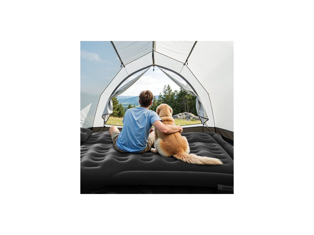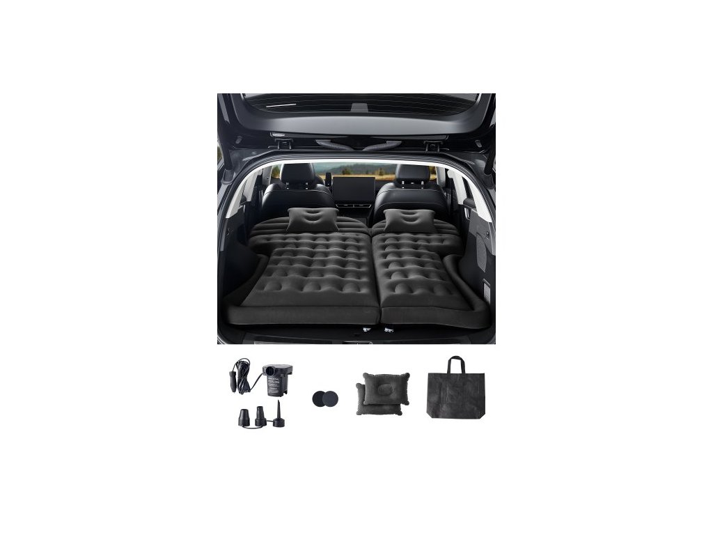 Nafukovací matrace do auta , nafukovací kempingová matrace, cestovní matrace s vločkovým tloušťkou, odolná přenosná karimatka s pumpičkou, 2 polštáře, tryska, přepravní taška, vhodná pro většinu SUV, MPV, sedan, černáUniverzální nafukovací matrace do auta