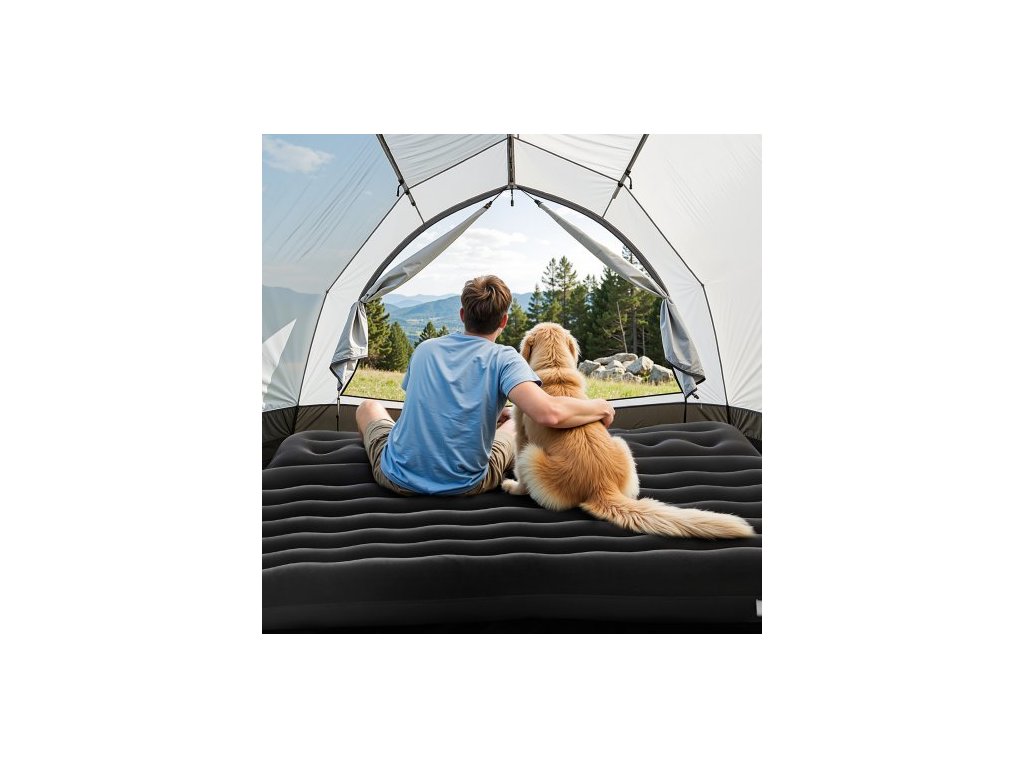 Nafukovací matrace do auta , nafukovací kempingová matrace na zadní sedadlo auta, cestovní matrace s vločkovým materiálem, odolná přenosná karimatka s pumpičkou, 2 polštáře, tryska, přepravní taška, vhodná pro většinu SUV, MPV, sedan, černáUniverzální nafukovací matrace do auta
