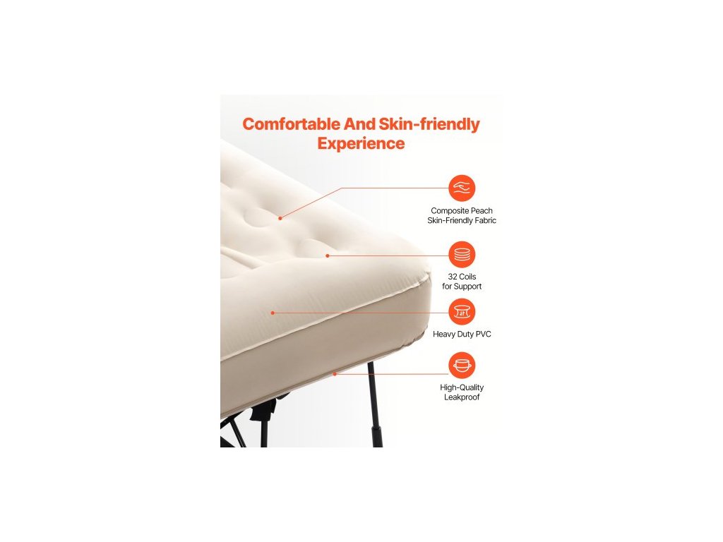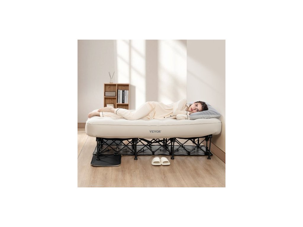 Nafukovací matrace s rámem, nafukovací kempingová postýlka pro 1 osobu s vestavěným čerpadlem, přenosná skládací matrace s nosností 136 kg, nafukovací matrace kdekoli pro hosty, kempování, cestování, vnitřní i venkovní použití