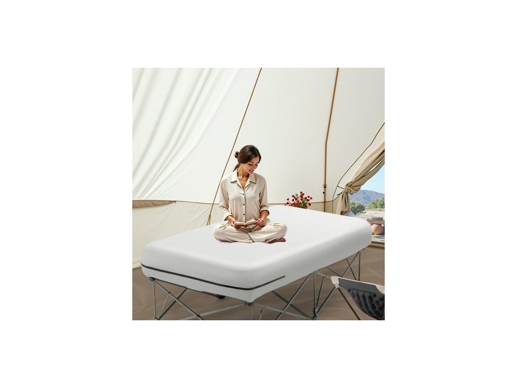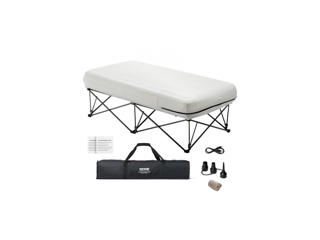 Nafukovací matrace Twin s rámem, nafukovací matrace pro 1 osobu s pumpou a přepravním pouzdrem, přenosná skládací nafukovací matrace s nosností 136 kg, rychle se nafukující nafukovací matrace pro domácnost, hosty a kempování