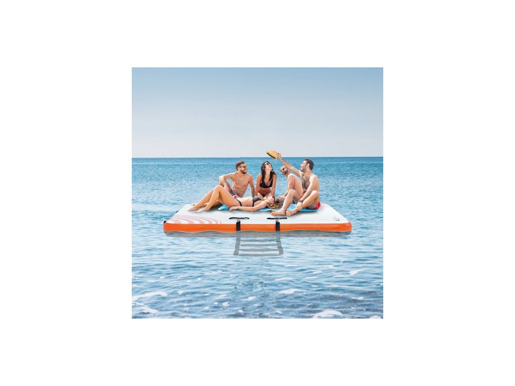 Nafukovací plovoucí dok , 6 x 5 stop nafukovací dokovací plošina, protiskluzová vodní plovoucí rohož s přenosnou taškou a odnímatelným žebříkem, plovoucí plošina, ostrovní raft pro bazén, pláž, oceán