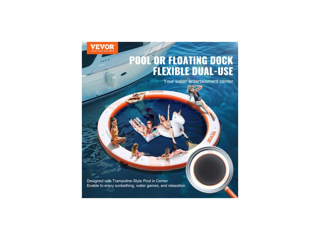 Nafukovací plovoucí dok , nafukovací dokovací plošina ø10FT s trampolínovým síťovaným bazénem ø8FT, protiskluzová plovoucí plošina s vodní podložkou, přenosnou taškou a odnímatelným žebříkem pro relaxaci u bazénu a plážeDvojčinné ruční čerpadlo