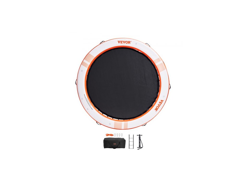 Nafukovací plovoucí dok , nafukovací dokovací plošina ø10FT s trampolínou ze síťoviny ø8FT, protiskluzová plovoucí plošina s vodní podložkou s přenosnou taškou a odnímatelným žebříkem pro relaxaci u bazénu a pláže