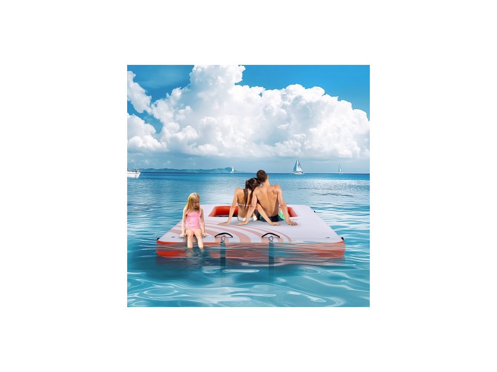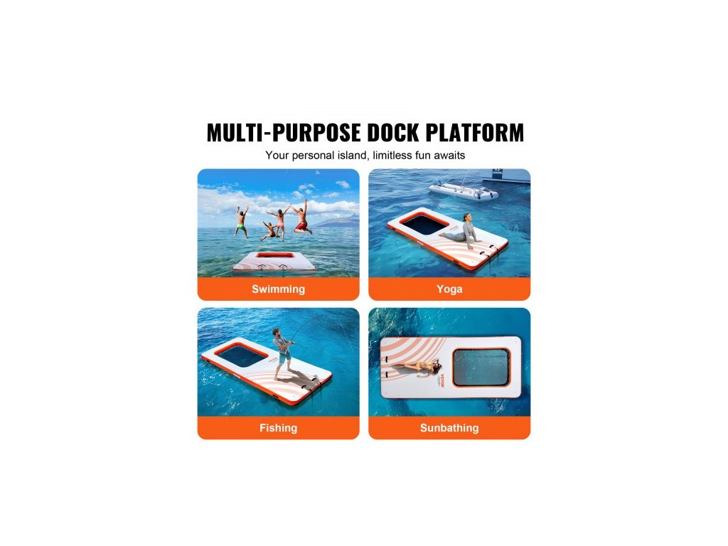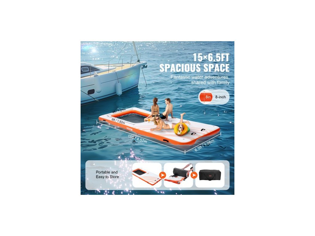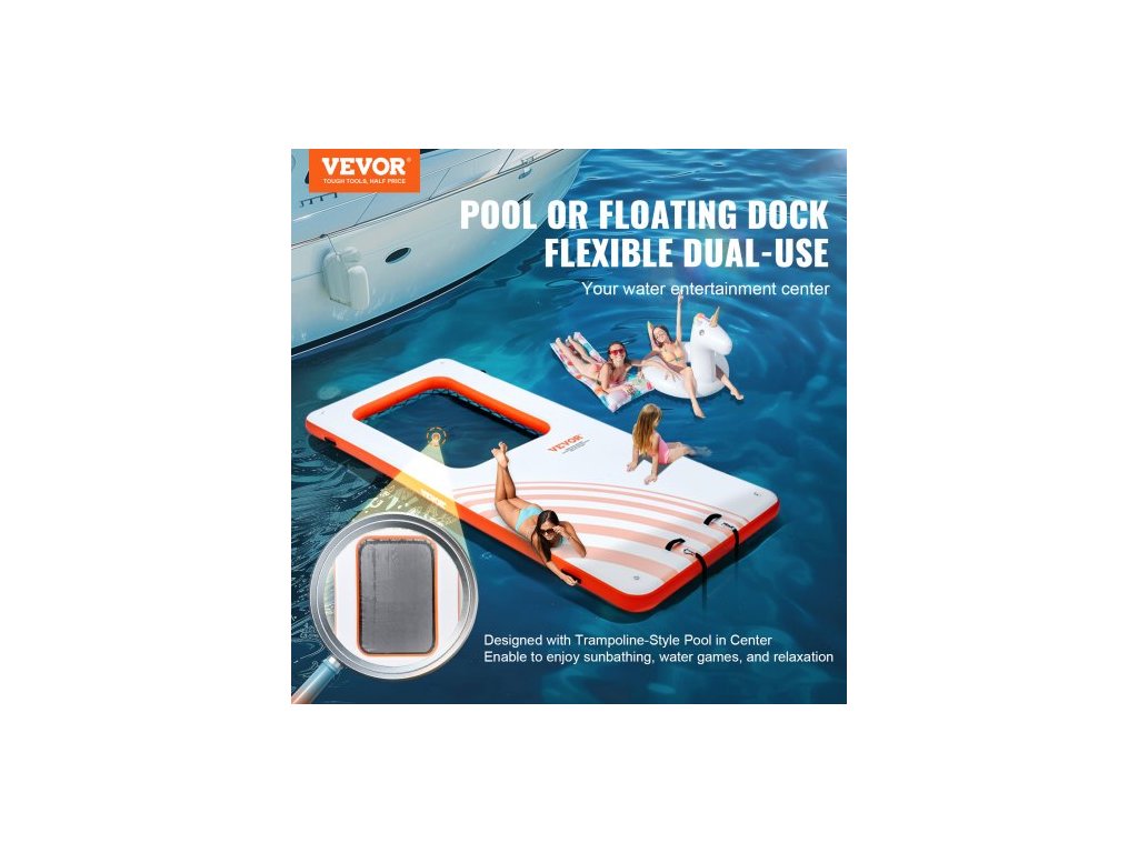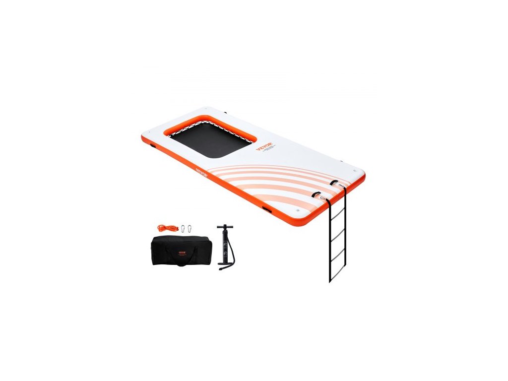Nafukovací plovoucí dok , nafukovací dokovací plošina 15x6,5 stop s trampolínovým síťovým bazénem 4*6 stop, protiskluzová plovoucí plošina s vodní podložkou, přenosnou taškou a odnímatelným žebříkem pro relaxaci u bazénu a plážeDvojčinné ruční čerpadlo