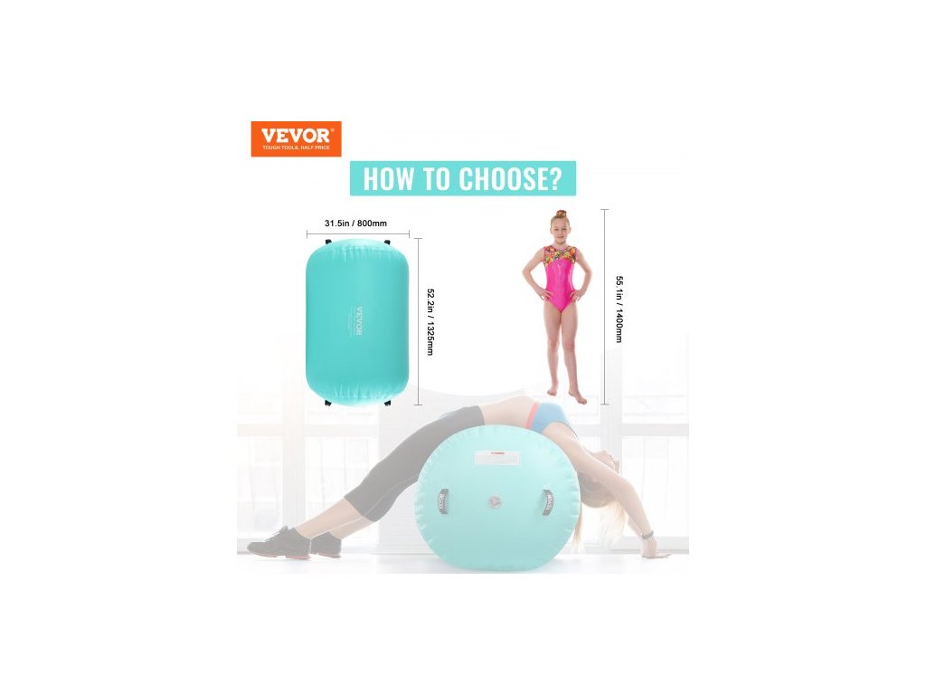 Nafukovací válec s bubnovou dráhou, kulatý, gymnastické vybavení s elektrickým čerpadlem, bubnový trenažér pro domácí použití/posilovnu/jógu/roztleskávání/park/vodu, mátově zelenáVysoce kvalitní nafukovací válec