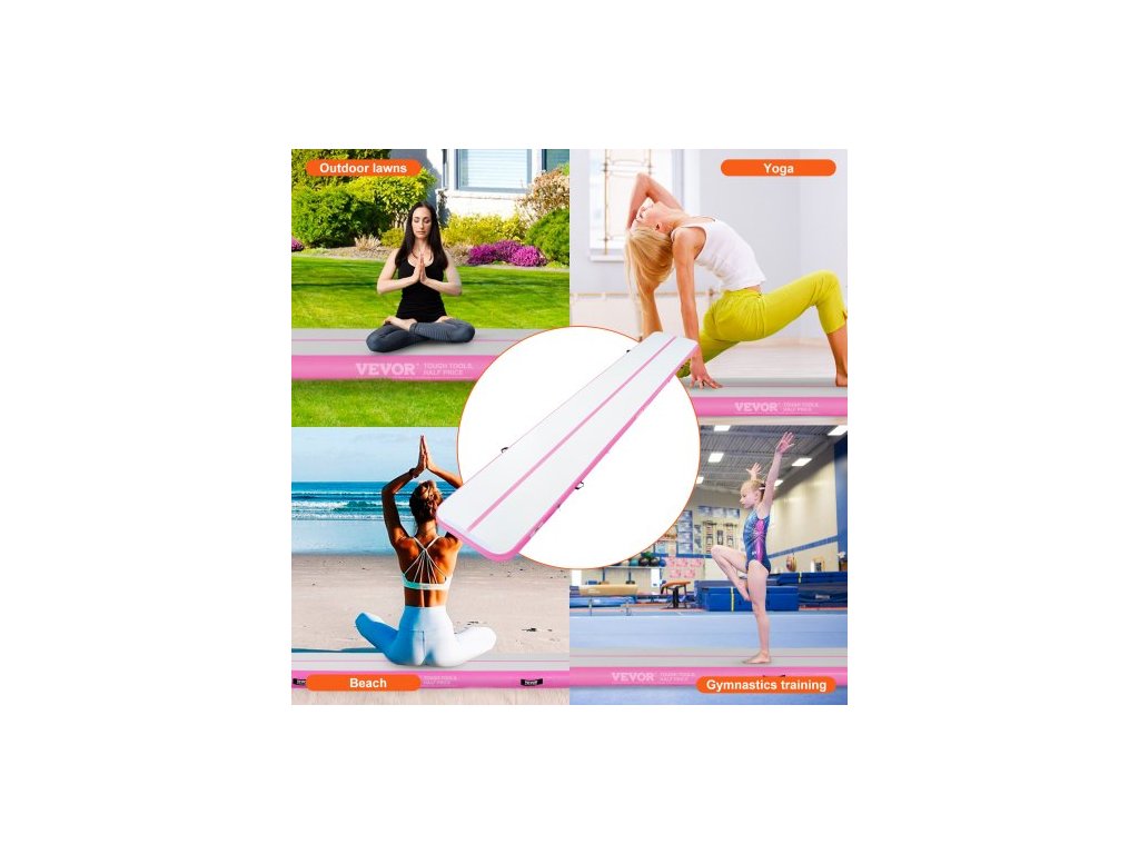 Nafukovací podložka na gymnastiku , tloušťka 4 palce, oválná dráha s elektrickým čerpadlem, tréninkové podložky pro domácí použití/posilovnu/jógu/roztleskávání/pláž/park/vodu, 20 stop, růžová