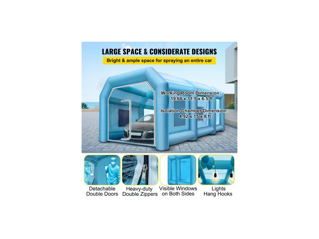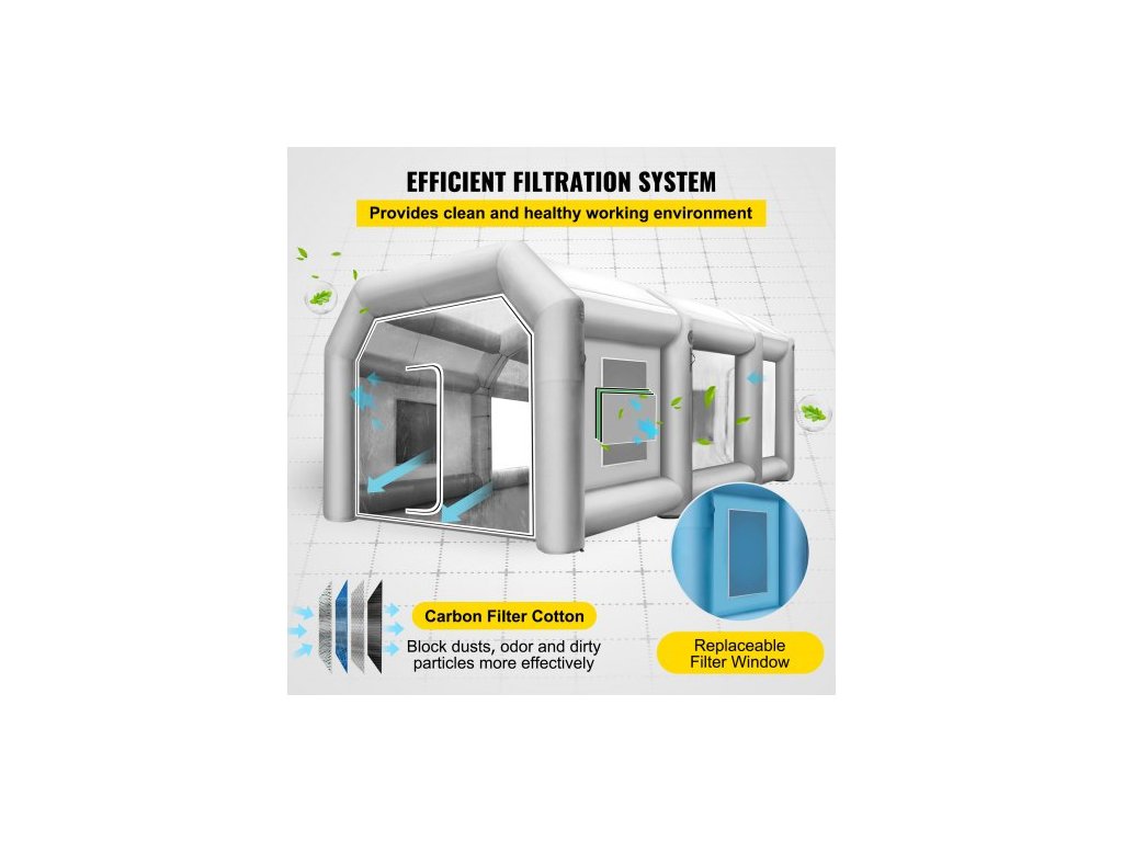 Nafukovací stan 792,5 x 457,2 x 304,8 cm Nafukovací stan s lakovací kabinou Nafukovací stan s lakovací kabinou Obří pracovní stanice Oxfordská tkanina 210D se 2 ventilátoryVysoce pevná oxfordská tkanina a PVC