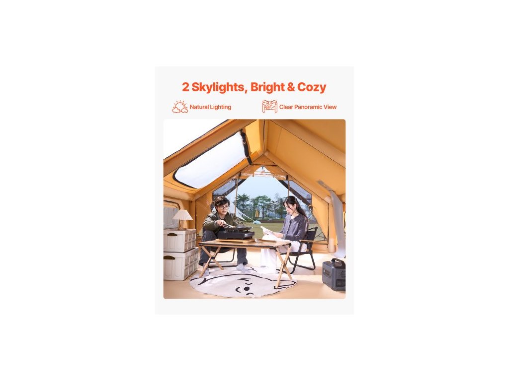 Nafukovací stany pro kempování, snadno postavitelný nafukovací stan pro 5-8 osob s ruční pumpou, luxusní glampingový stan se 2 střešními okny, stříškou, vařičem, 2 dveřmi a síťovanými okny (úložný vak je součástí balení)Háček na zavěšení lucerny