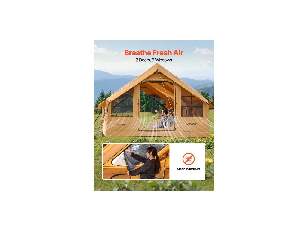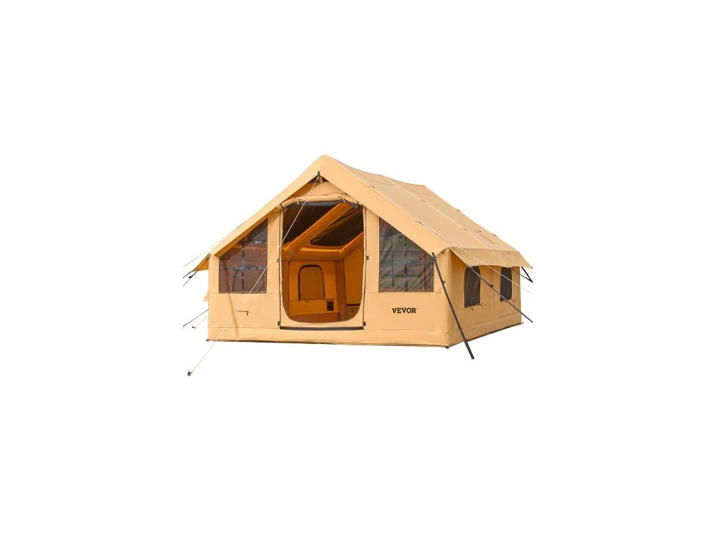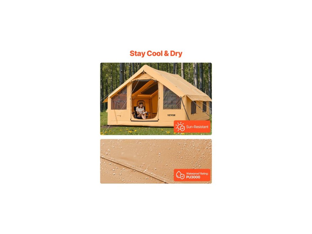 Nafukovací stany pro kempování, snadno sestavitelný nafukovací stan pro 5-8 osob s ruční pumpou, luxusní glampingový stan se 2 střešními okny, stříškou, vařičem, 2 dveřmi a síťovanými okny (úložný vak je součástí balení)