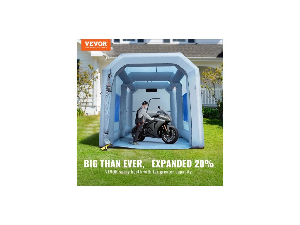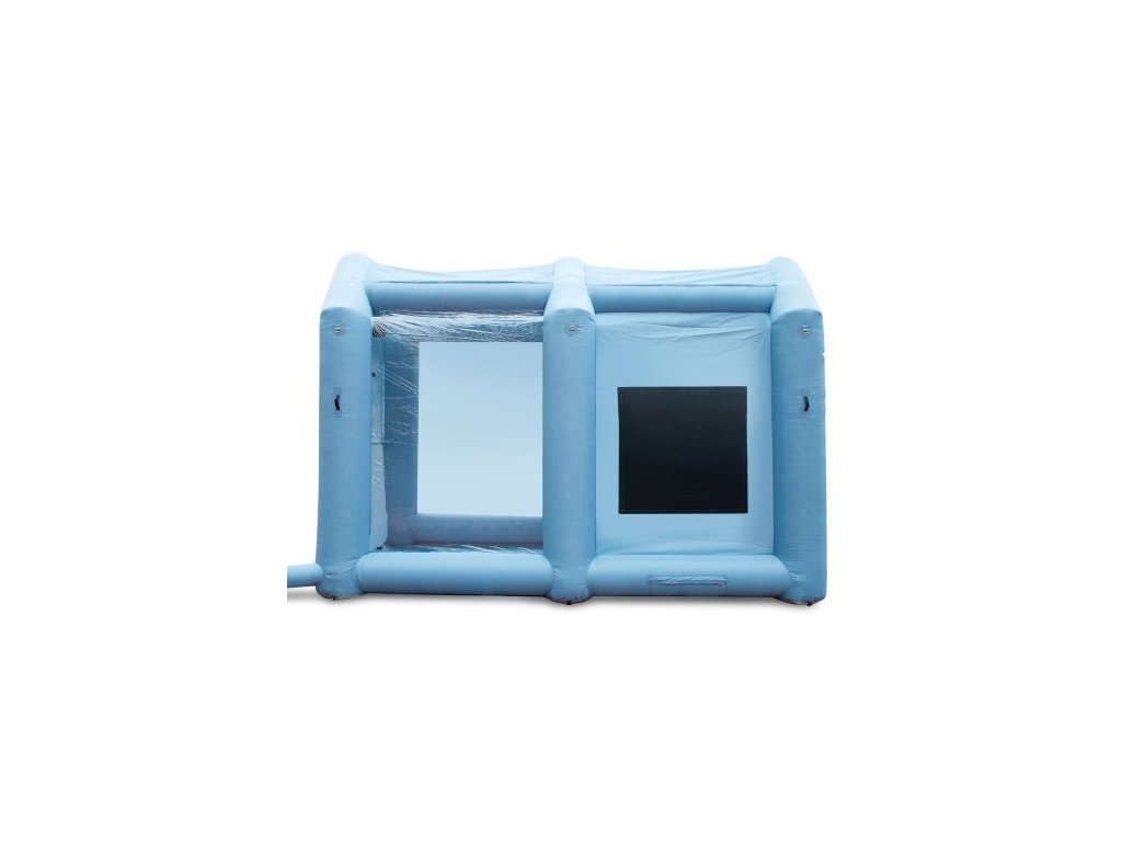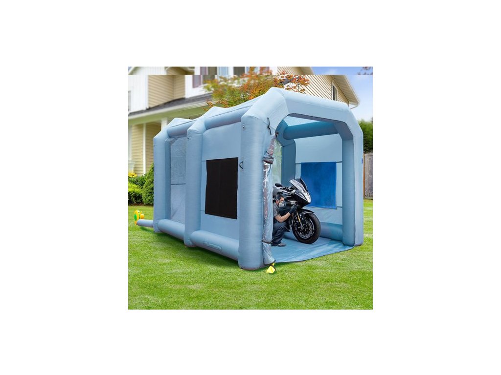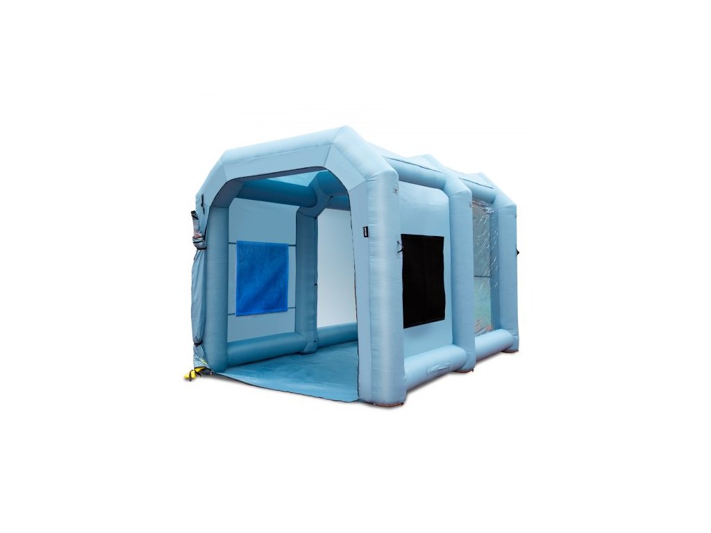 Nafukovací stříkací kabina , stan na lakování automobilů, 396 cm x 305 cm x 274 cm, filtrační systém, dmychadlo 950 W