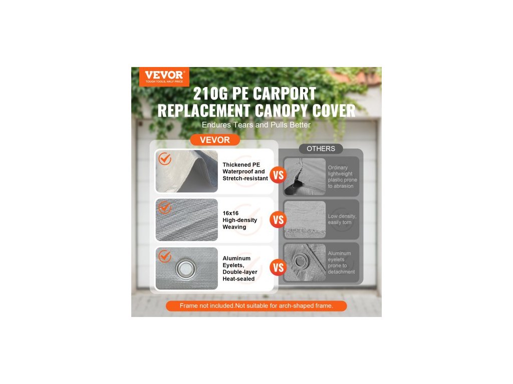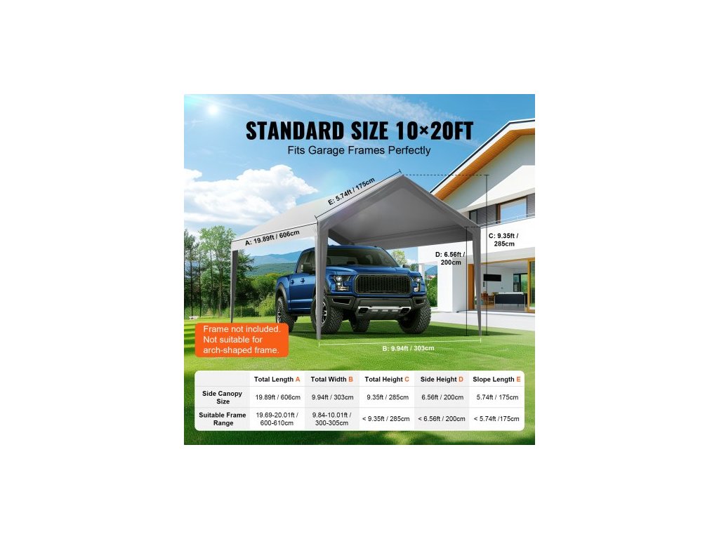 Úhlopříčka: 5,74 stop / 1750 mm,Barva: Šedá,Model: SXYQCPBH10X20,Rozměry výrobku: 20 x 10 x 2,8 stop / 6100 x 3040 x 850 mm,Čistá hmotnost: 13,6 lbs / 6,15 kg,Hlavní materiál: 210g PE plastová tkanina,Hliníková očka: 40