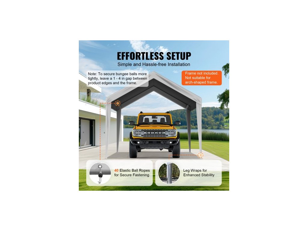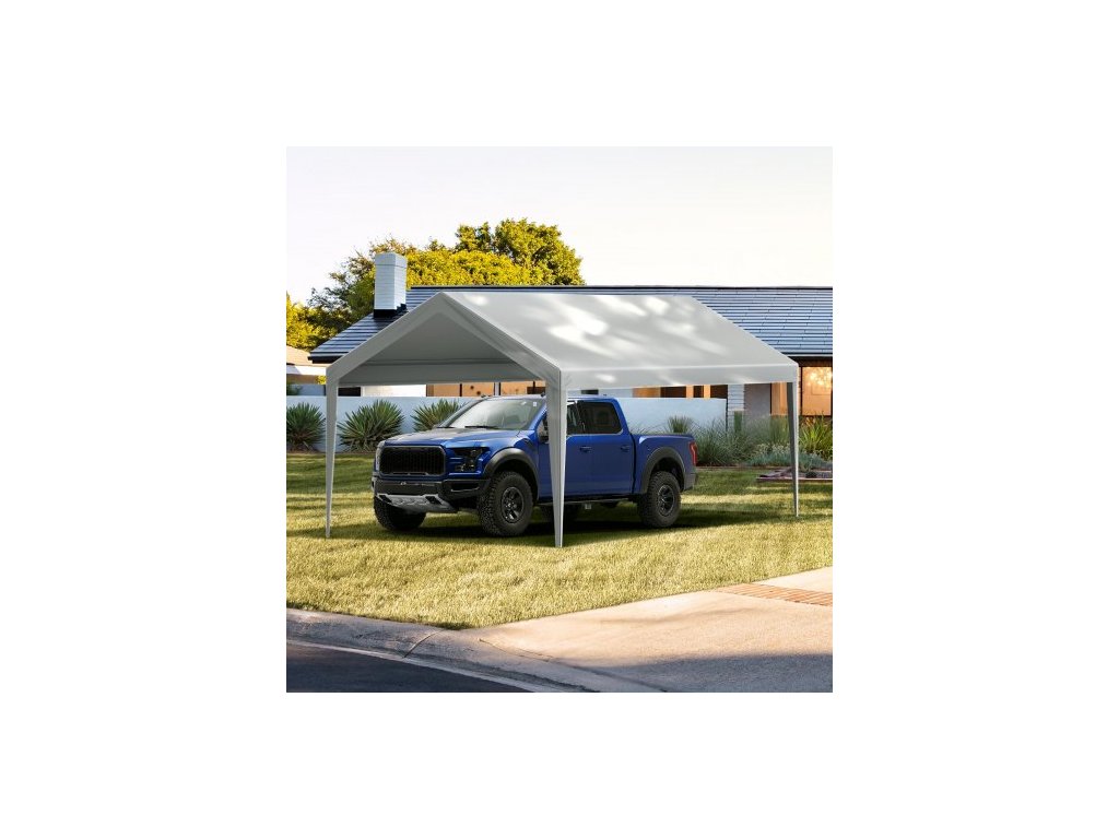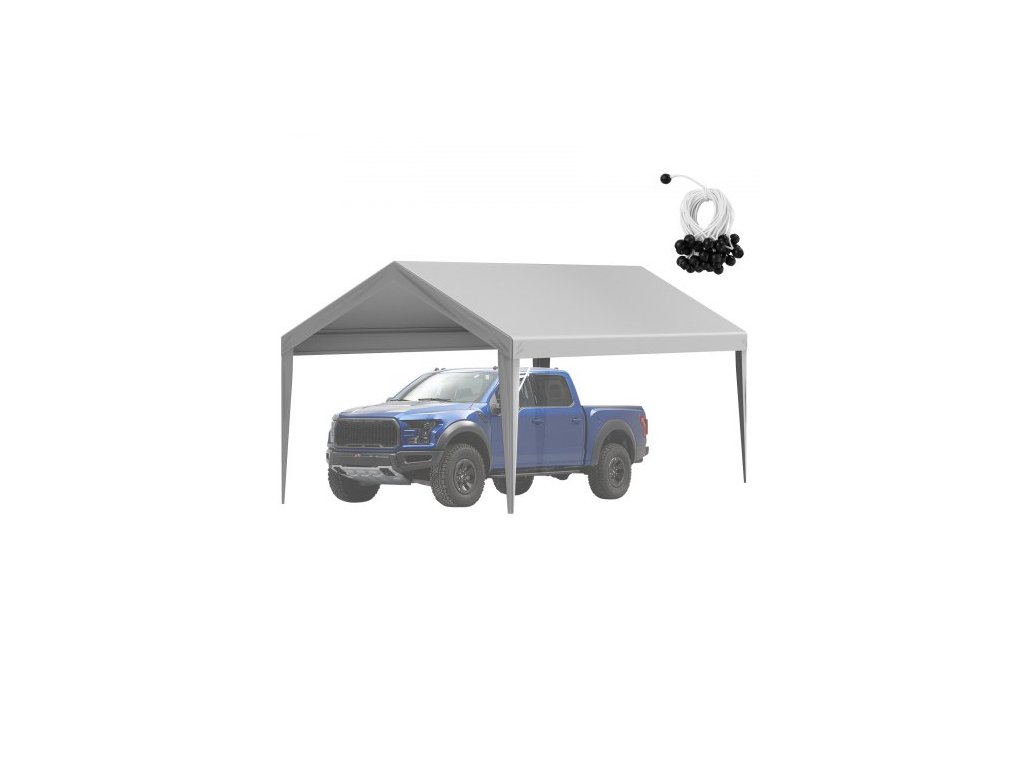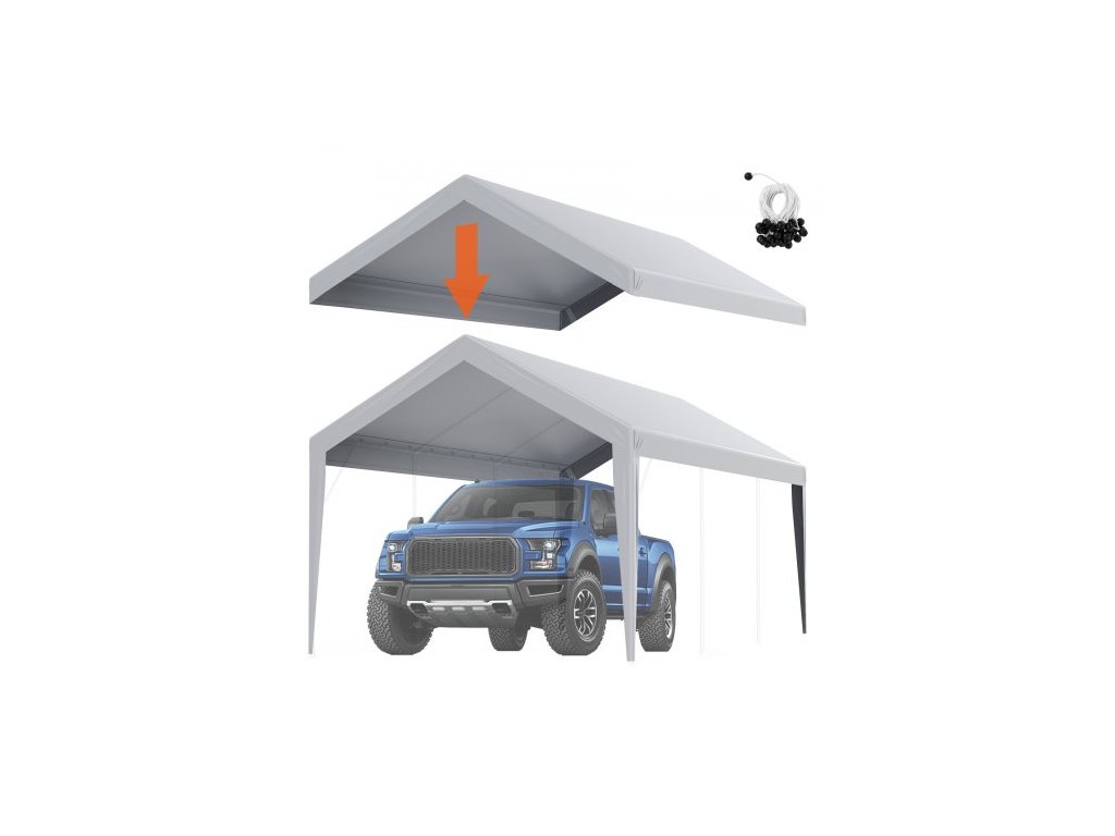 Náhradní plachta Carport 6100 x 3040 mm, střešní stan, odolná proti vodě a UV záření, snadná instalace s gumovými úchyty, šedá (pouze horní plachta, rám není součástí balení)Praktická velikost