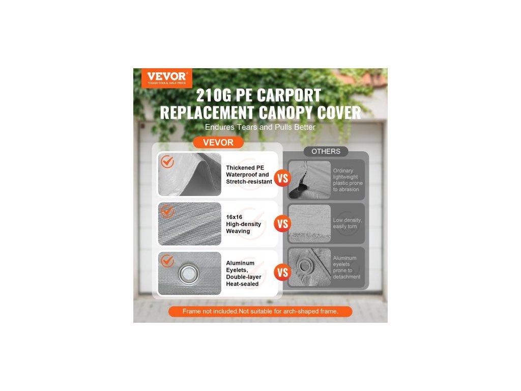 Náhradní plachta na garážové stání 13 x 20 stop, odolná proti vodě a UV záření, snadná instalace s gumovými pásky, šedá (pouze horní kryt, rám není součástí balení)