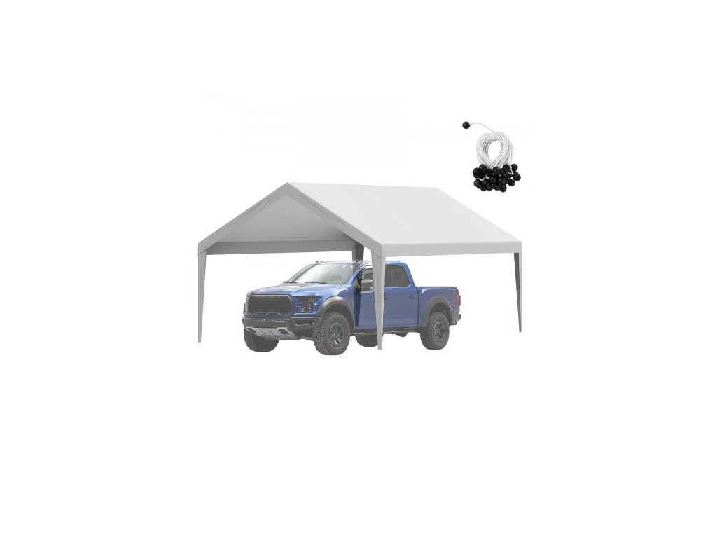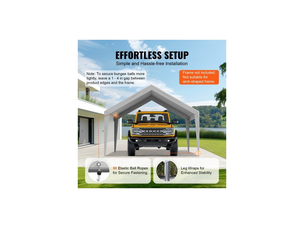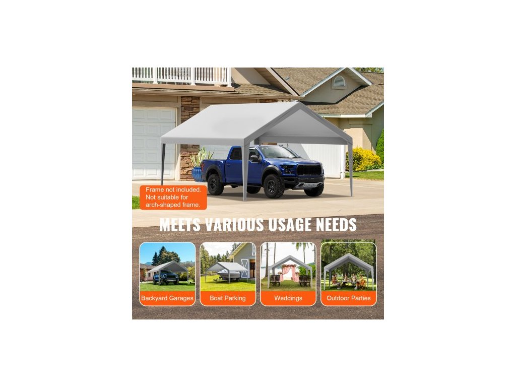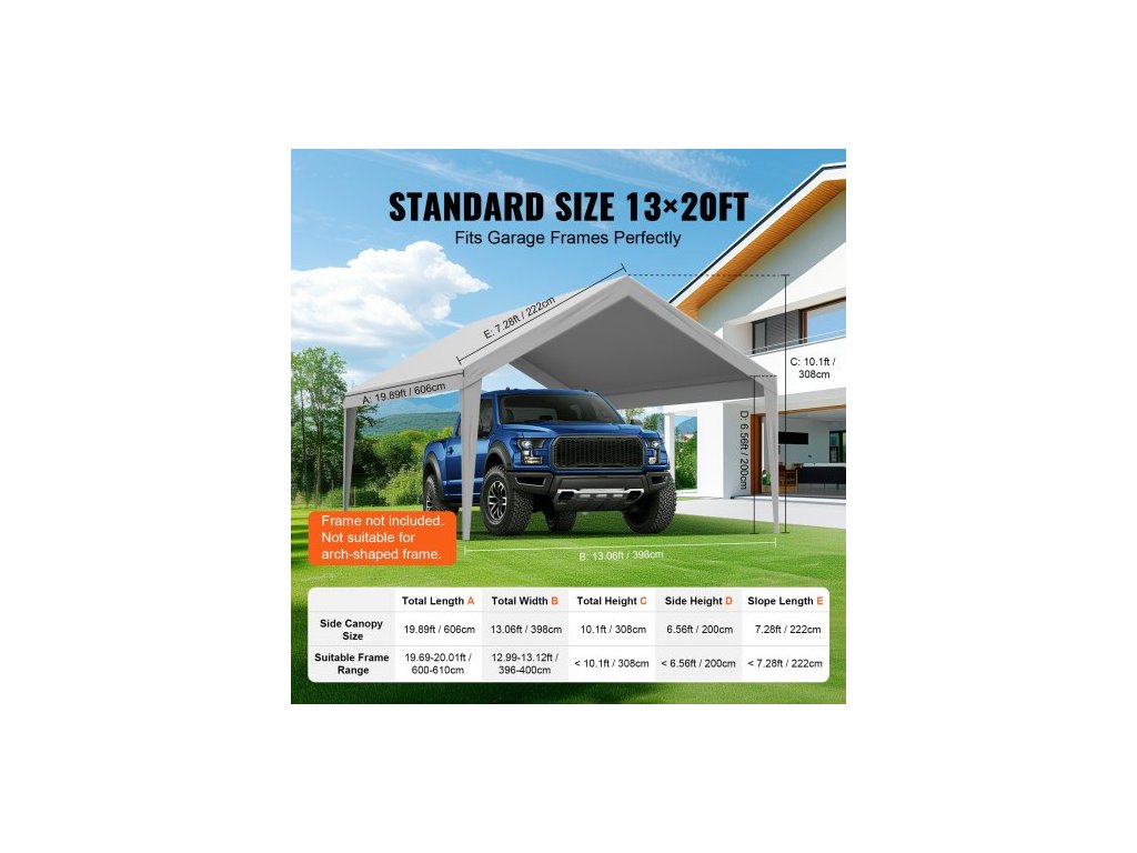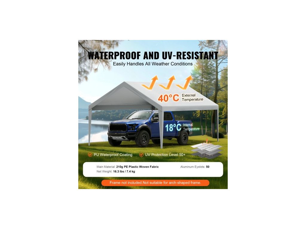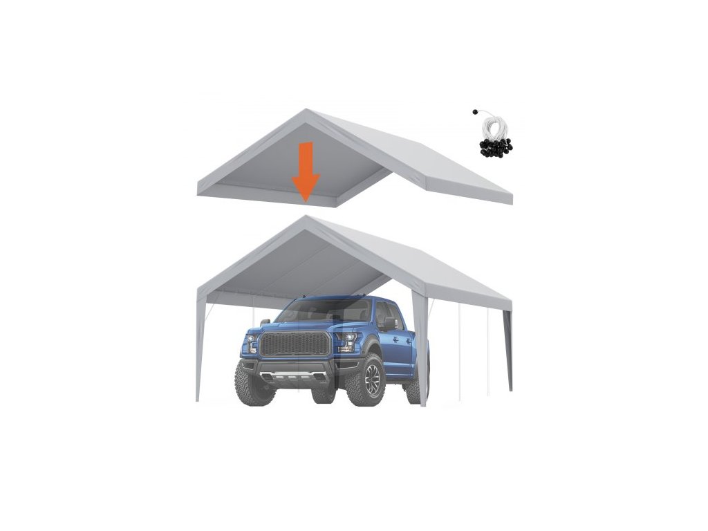Náhradní plachta na auto 13 x 20 stop, plachta na střechu garáže, odolná proti vodě a UV záření, snadná instalace s gumovými úchyty, šedá (pouze horní kryt, rám není součástí balení)Praktická velikost