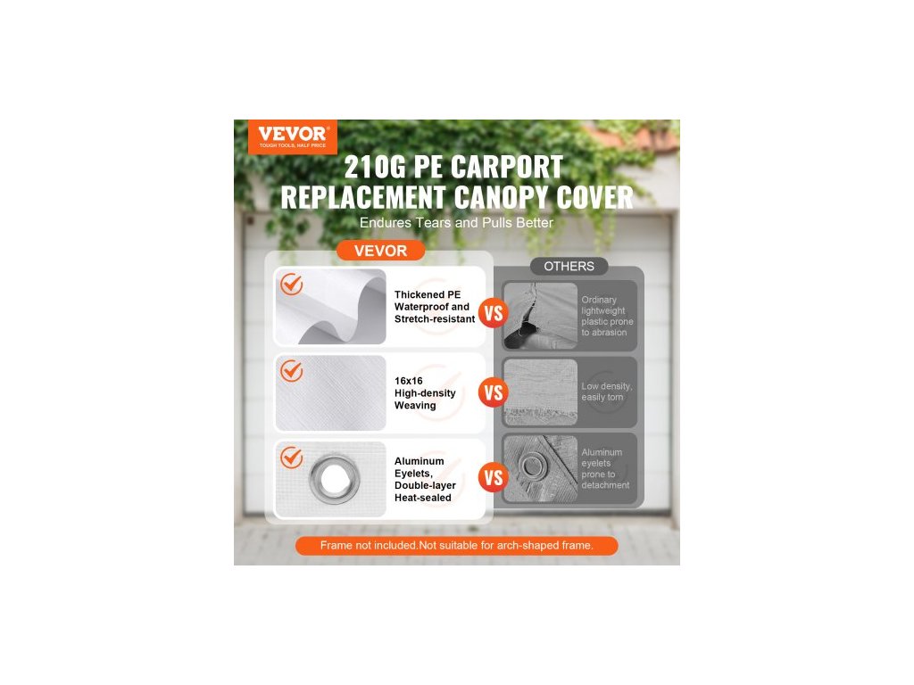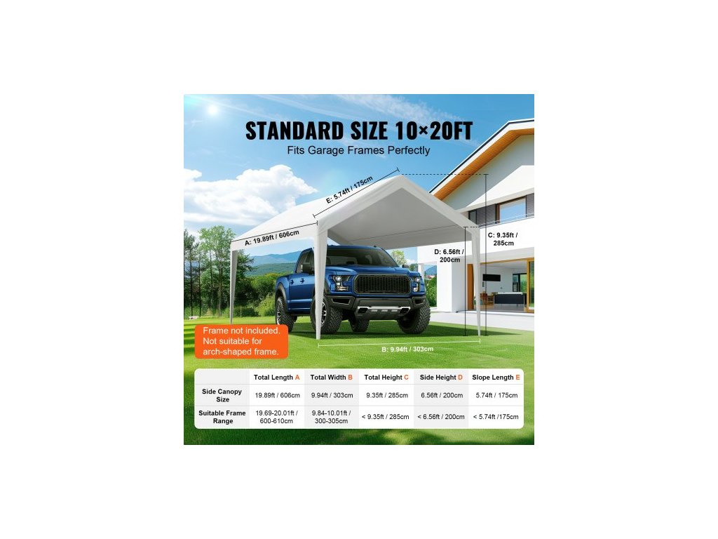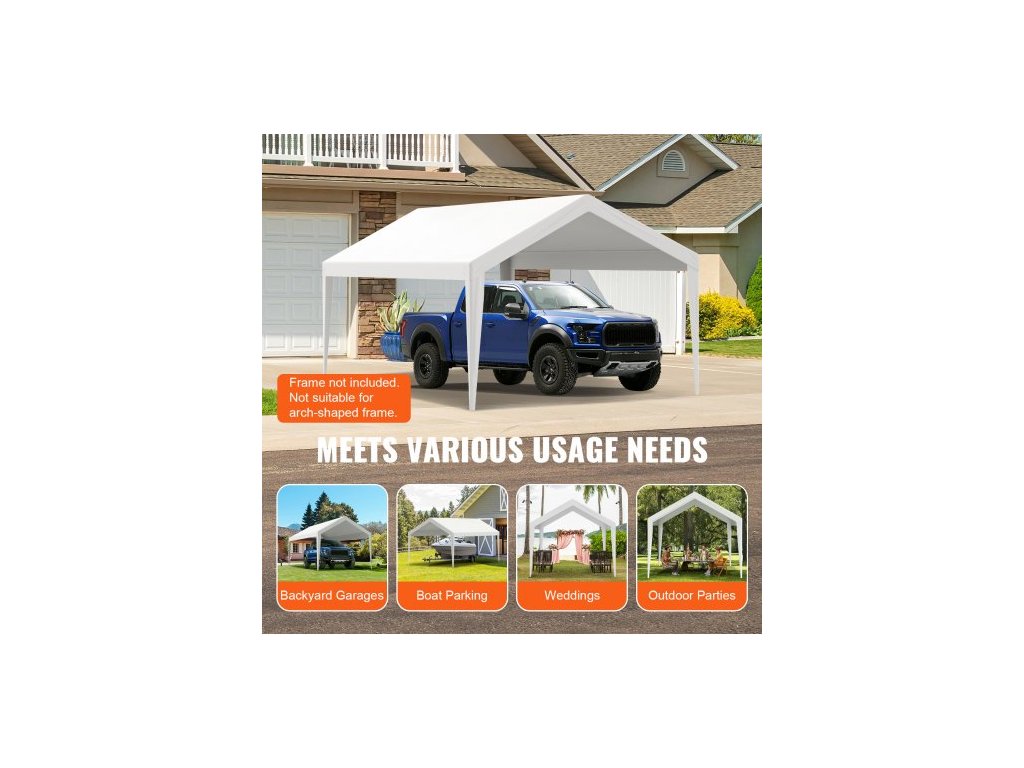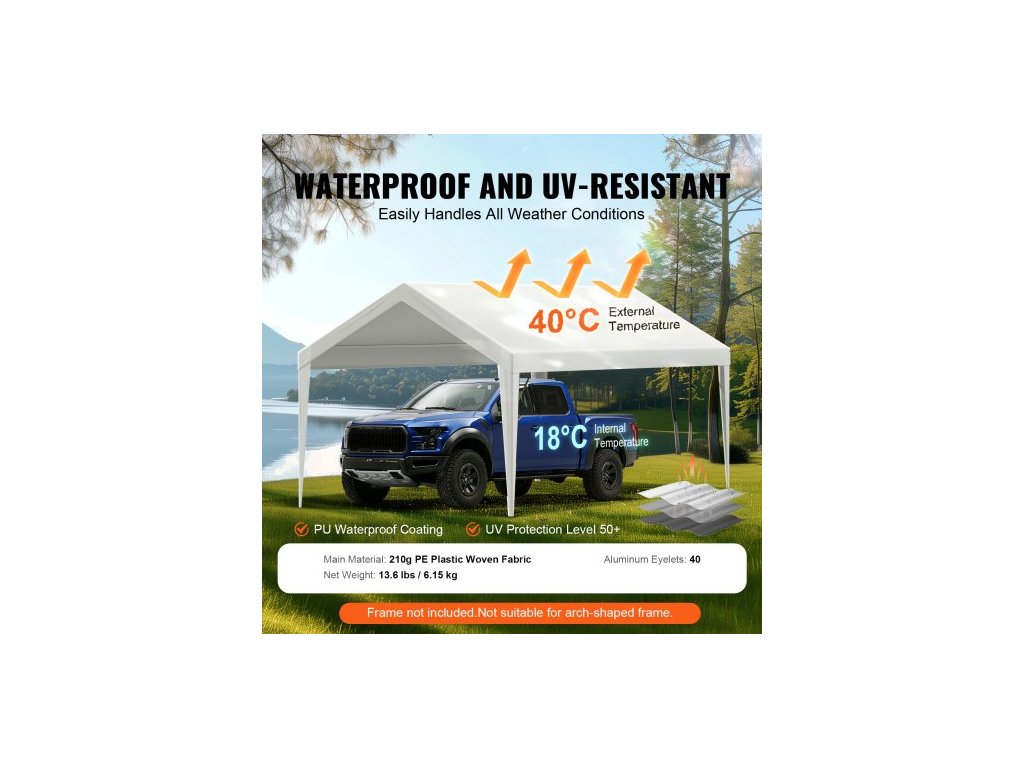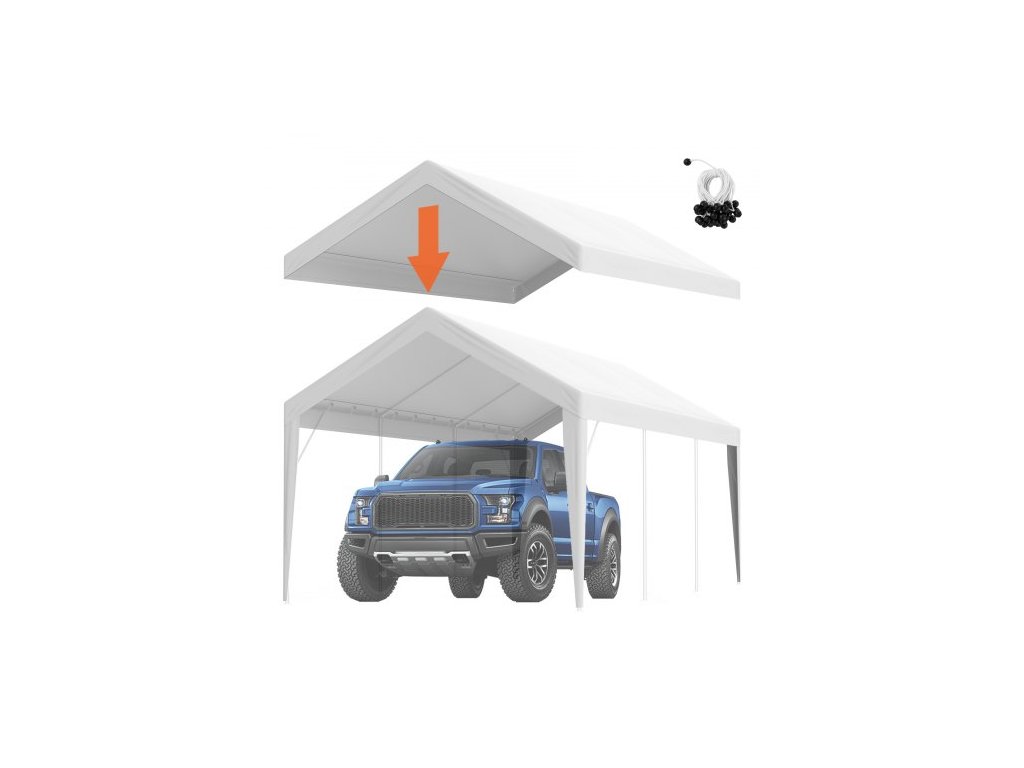 Náhradní plachta na auto 6100 x 3040 mm, plachta na střechu garáže, odolná proti vodě a UV záření, snadná instalace s gumovými úchyty, bílá (pouze horní plachta, rám není součástí balení)Praktická velikost