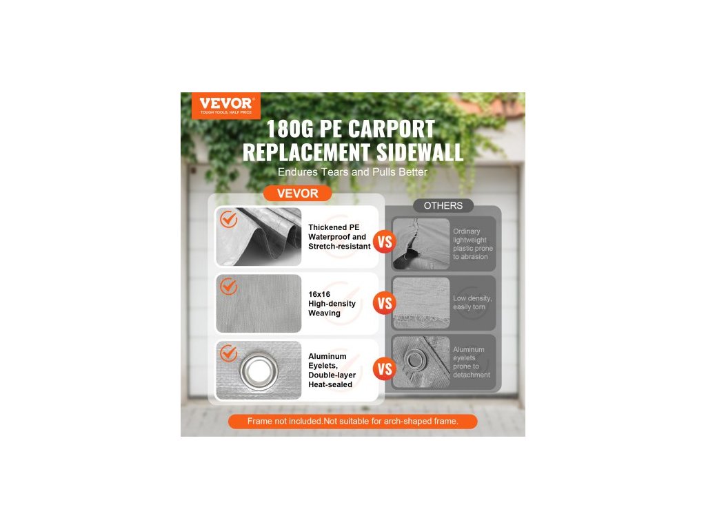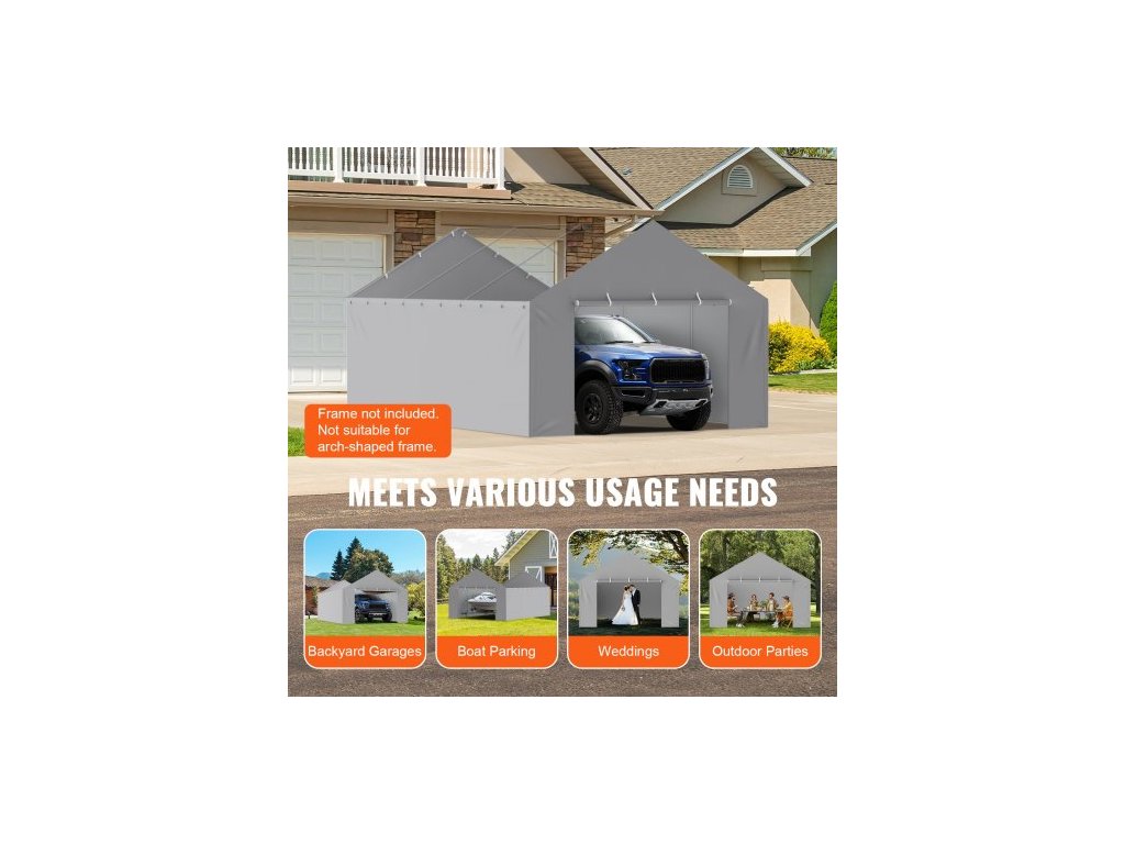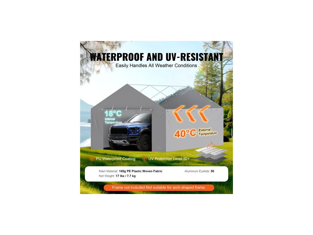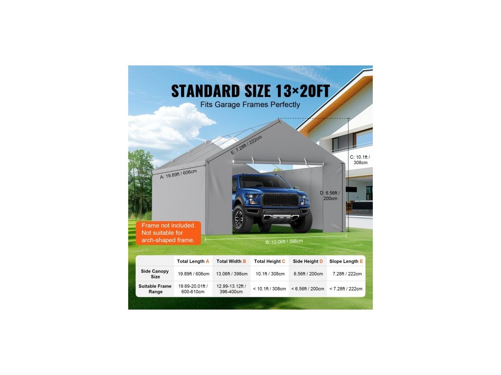 Náhradní plachta na auto, boční stěna 13 x 20 stop, plachta na garážový stan, odolná proti vodě a UV záření, snadná instalace s gumovými úchyty, šedá (vrchní část a rám nejsou součástí balení)Praktická velikost