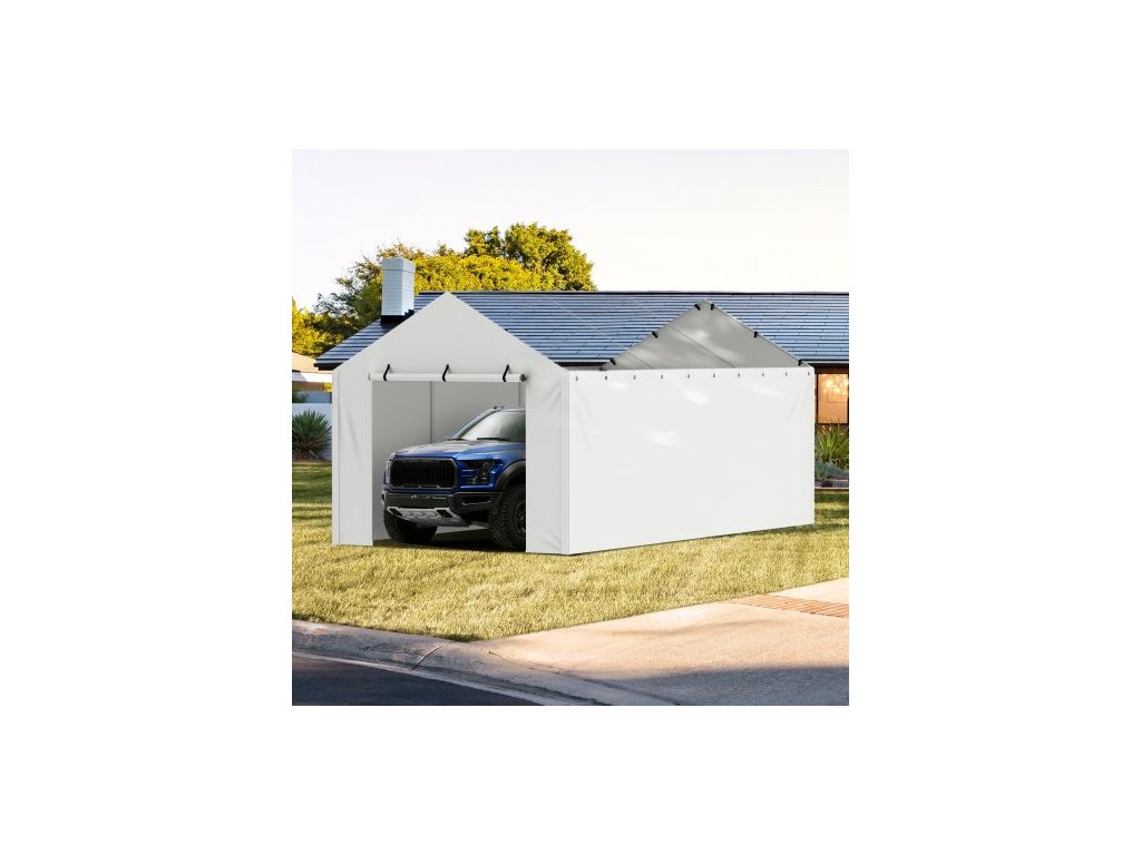 Náhradní plachta na garážové stání , boční stěna 3 x 6 metrů, odolná proti vodě a UV záření, snadná instalace s gumovými pásky, bílá (vrchní díl a rám nejsou součástí balení)