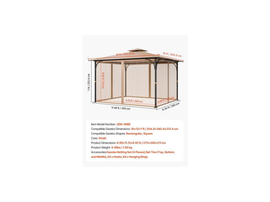 Barva: Khaki,Číslo modelu položky: JDM-36BE,Hmotnost výrobku: 4,19 lbs / 1,90 kg,Rozměry kompatibilního altánu: 10×12×7 stop / 304,8×365,8×213,4 cm,Tvary kompatibilního altánu: Obdélníkový, Čtvercový,Rozměry výrobku: 8,99×11,15×6,92 stop / 275×340×211 cm