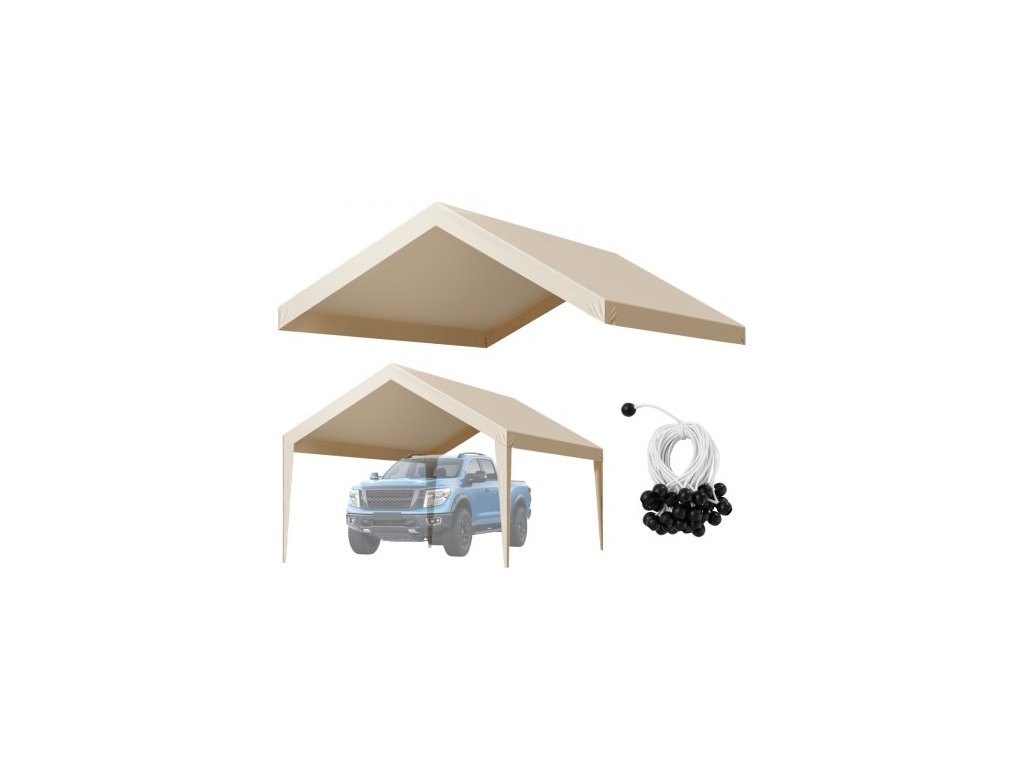 Náhradní stříška Carport, 3,6 x 6 m plachta na garáž s pitnou vodou, UV odolná a vodotěsná plachta na auto, odolná plachta na auto s kufříky, béžová, rám není součástí baleníZtluštěný PE materiál