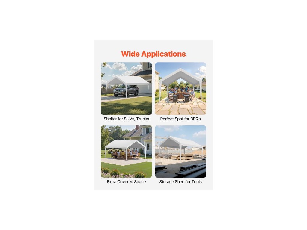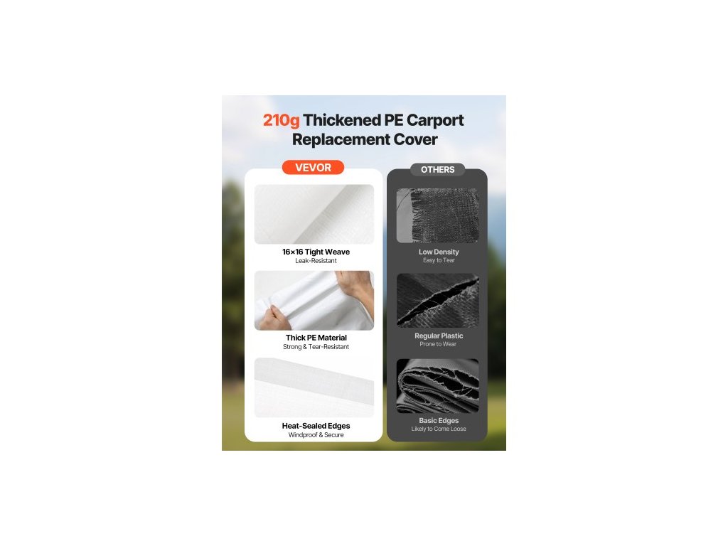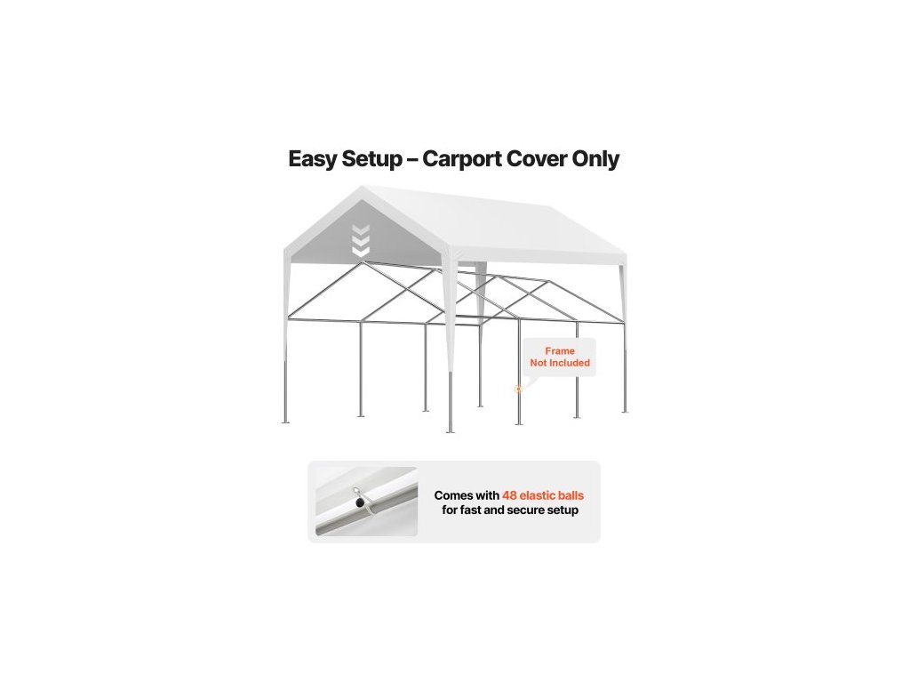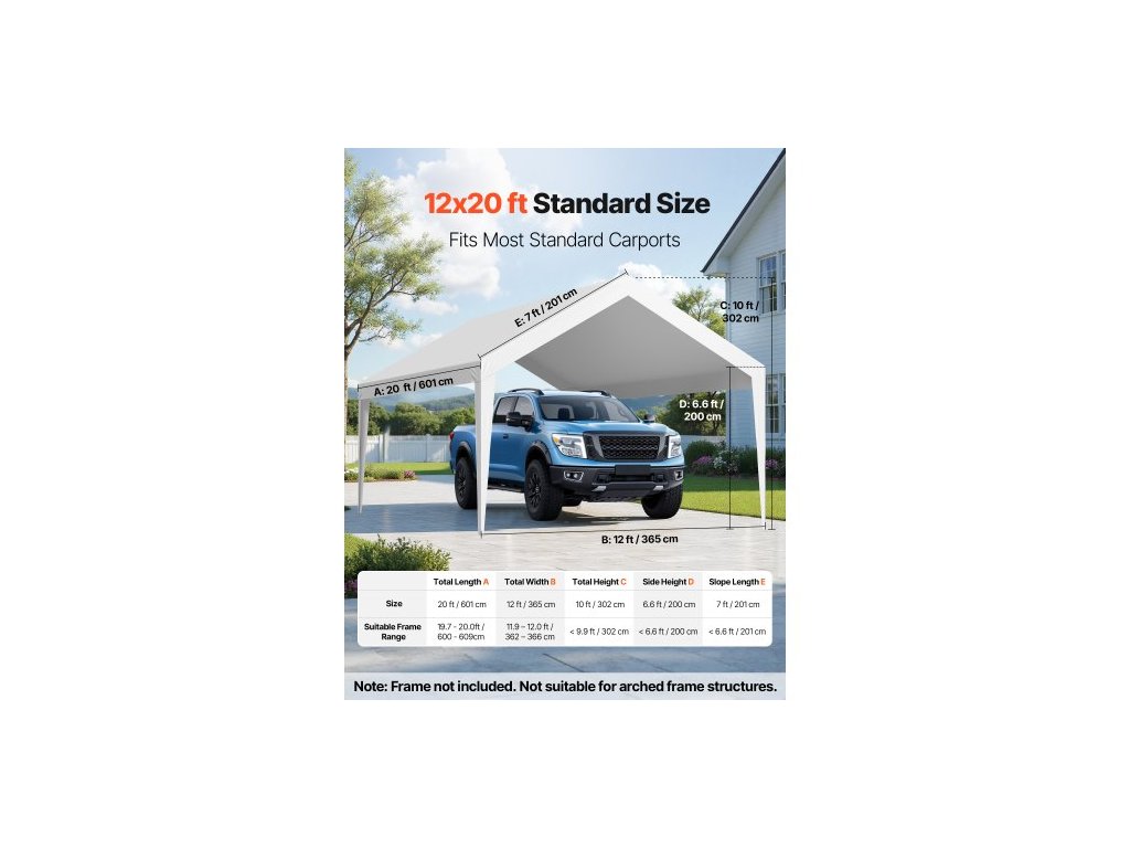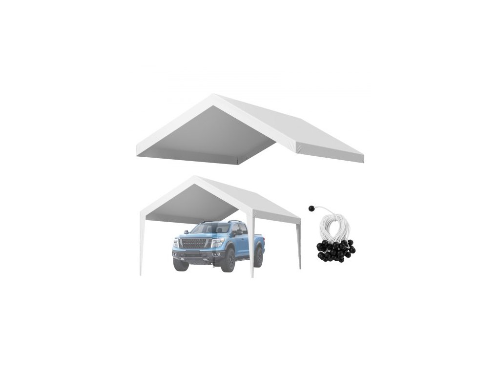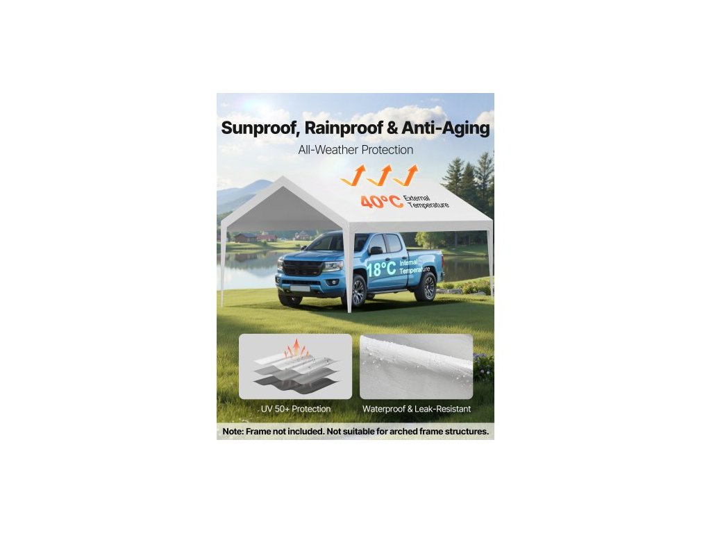 Náhradní stříška Carport, 3,6 x 6 m plachta na garáž s pitnou vodou, UV odolná a vodotěsná plachta na auto, odolný kryt s kuličkovými vozíky, bílá, rám není součástí baleníZtluštěný PE materiál