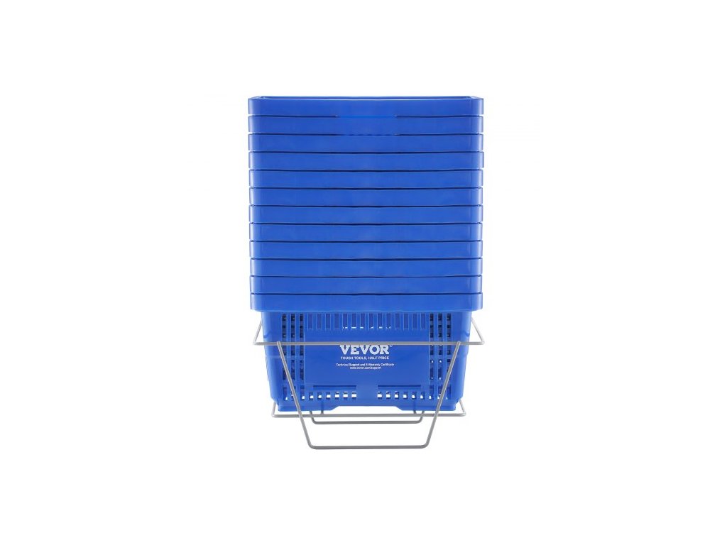 Nákupní košík , sada 12 kusů, 24l odolný plastový koš na potraviny s rukojetí a stojanem, 16,73 x 11,61 x 8,86 palce, přenosný nákupní košík, velkoobchodní použití pro nákupy potravin v maloobchodních prodejnách, supermarketech, modrý
