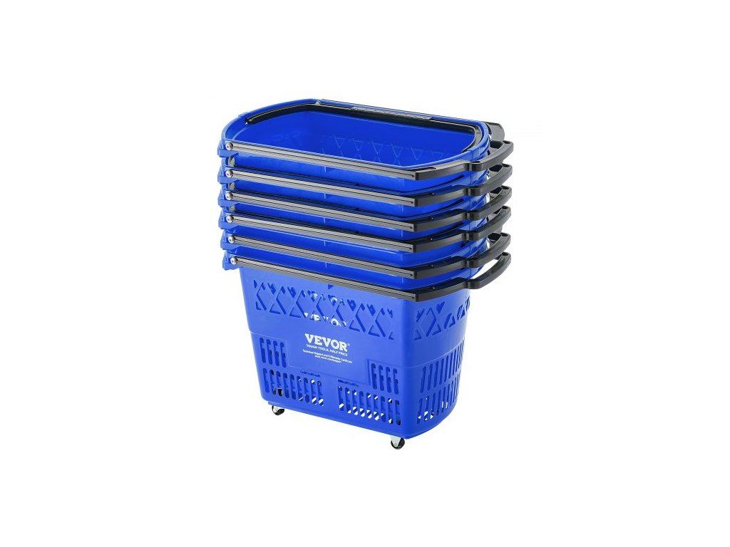 Nákupní košíky , 6 ks, 39l nákupní vozíky s rukojeťmi, plastový nákupní koš na kolečkách, sada velkých přenosných nákupních košíků pro supermarkety, maloobchodní prodejny, nákup potravin, modráVelkorysá kapacita