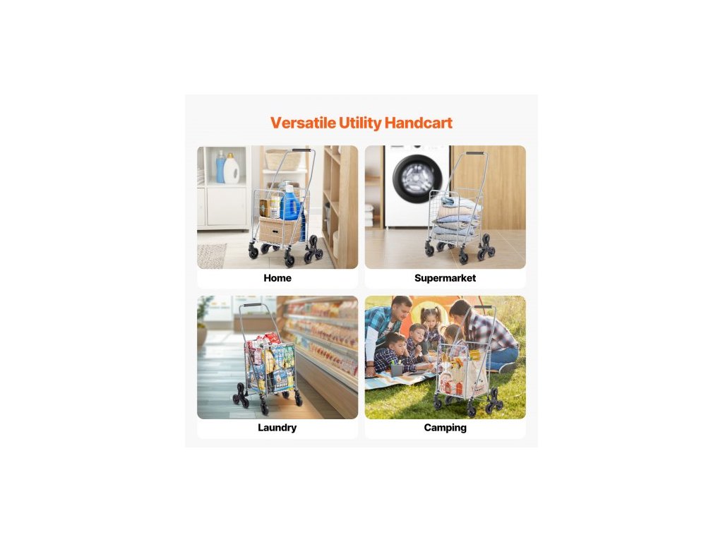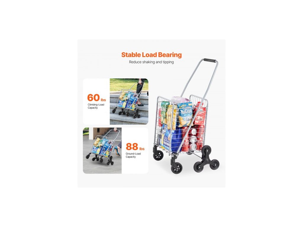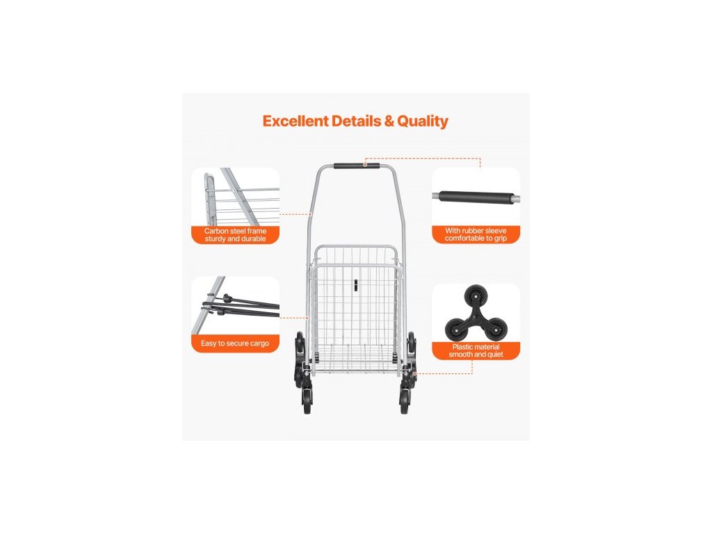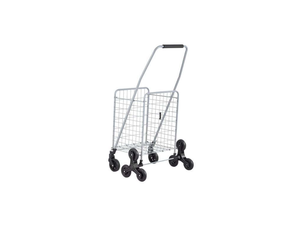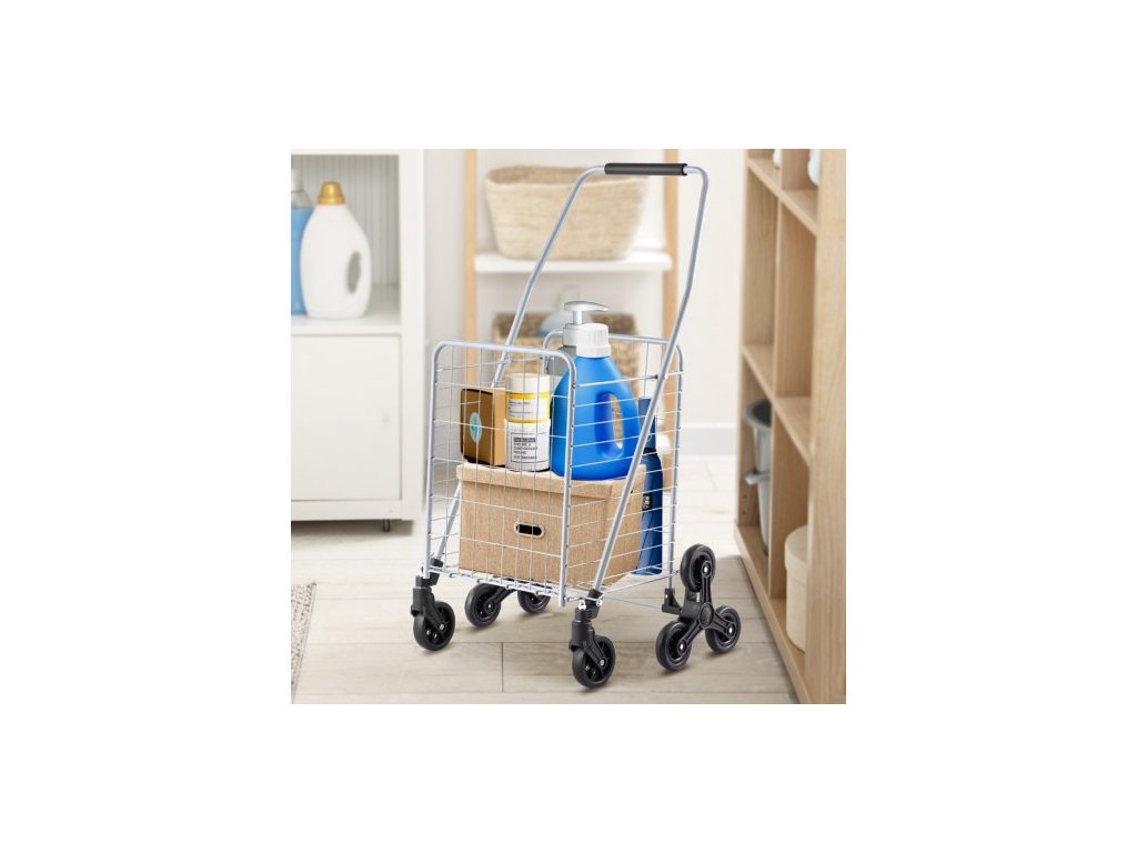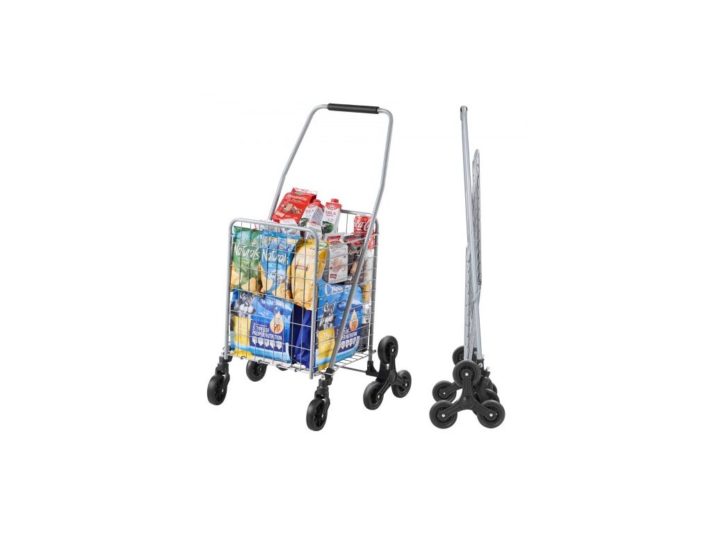Nákupní vozík , nákupní vozík na schody o objemu 45 l s otočnými kolečky o 360°, užitkový vozík na schody s třemi kolečky, skládací, lehký a snadno se používá na přepravu prádla, stříbrnýVelký vozík na schody o objemu 45 l
