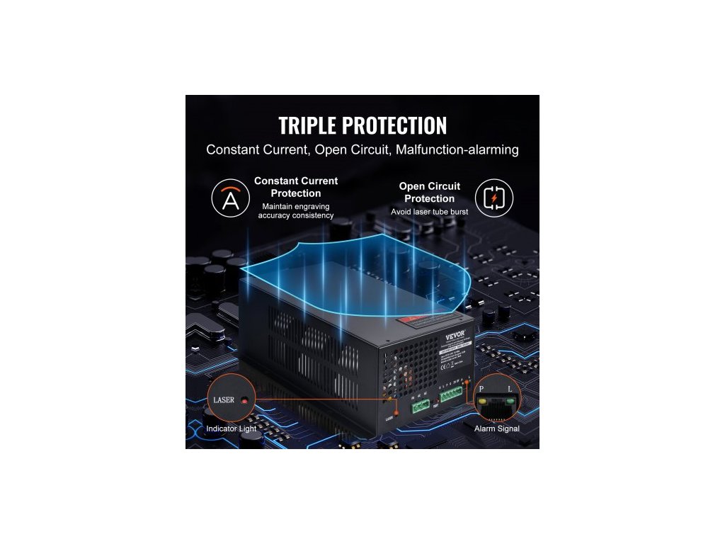 Napájecí zdroj CO2 laseru, 150 W, napájecí zdroj pro 150W laserovou trubici, ochrana proti konstantnímu proudu, ochrana proti přerušení obvodu, rychlý odvod tepla, kompatibilní s laserovými gravírkami a řezacími stroji různých značekRychlé gravírování