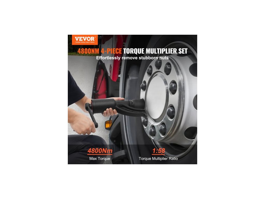 Násobič momentu , sada klíčů na násobič momentu pro vysoké zatížení, klíč na matice s pohonem 1 palce, násobič momentu, odstraňovač matic 1:58 4800 N.m, se 4 nástrčnými klíči a úložným pouzdrem pro nákladní automobily s přívěsem a obytným vozemVynikající výkon