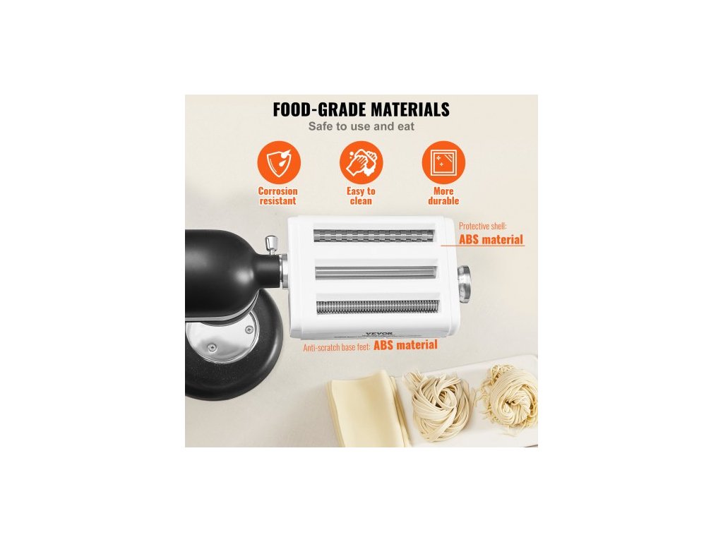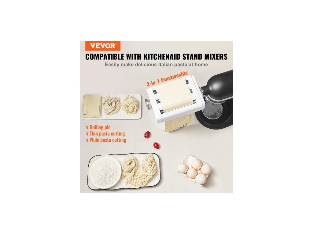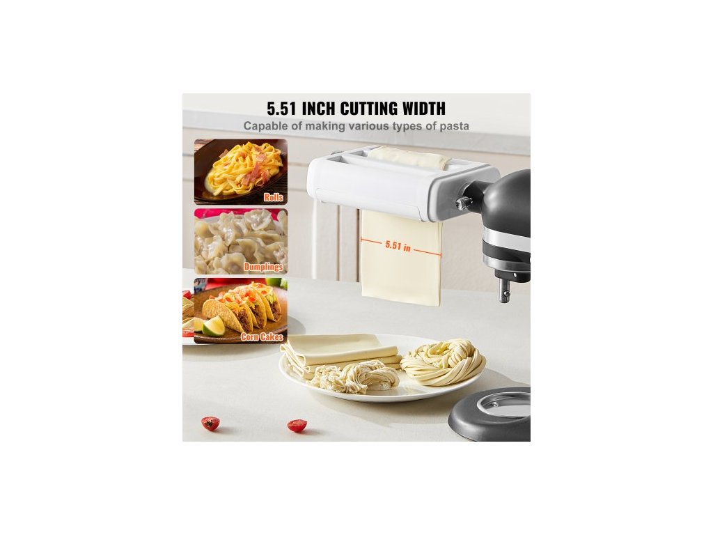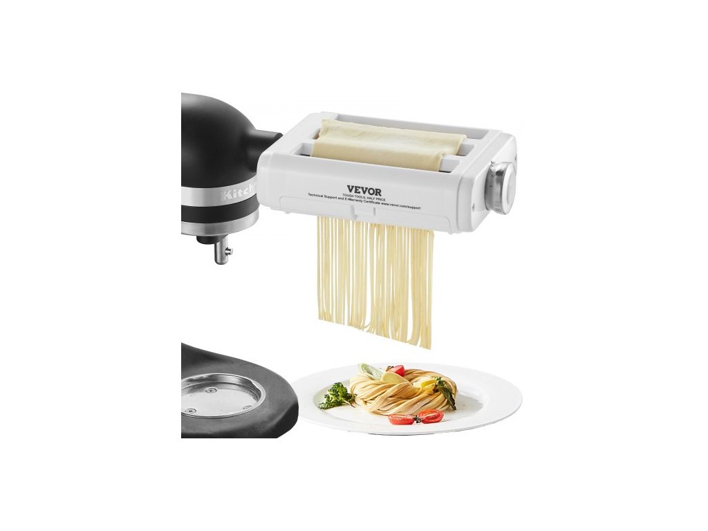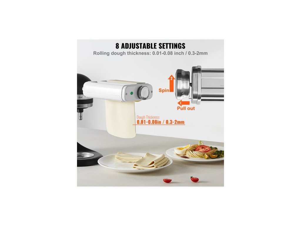 Nástavec na těstoviny pro kuchyňský robot KitchenAid, sada válečků na těstoviny 3 v 1 z nerezové oceli včetně válečku na pláty těstovin, kráječe na špagety a fettuccine, výrobník těstovin s 8 nastavitelnými knoflíky pro nastavení tloušťkyNastavitelná tloušťka v 8 úrovních