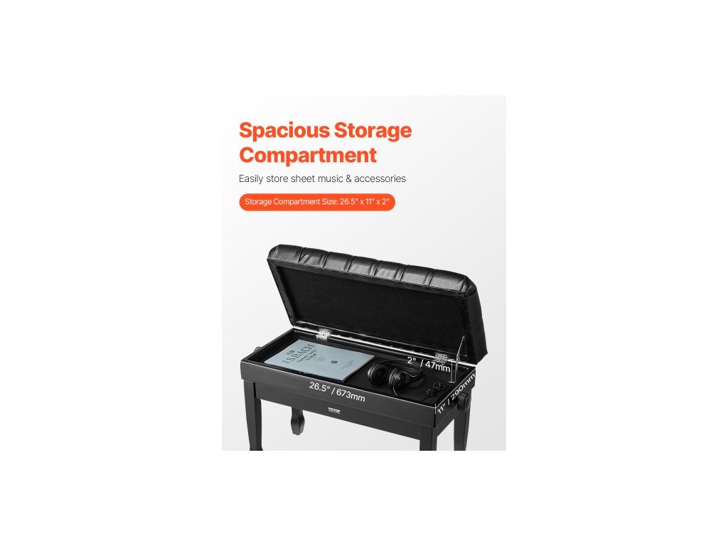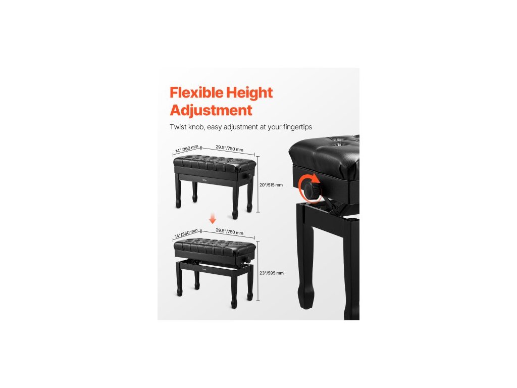 Nastavitelná lavice na klavír s úložným prostorem, polstrované sedátko, dřevěná knihovna, stolička 750x360x515 mmNastavitelná lavice na klavír