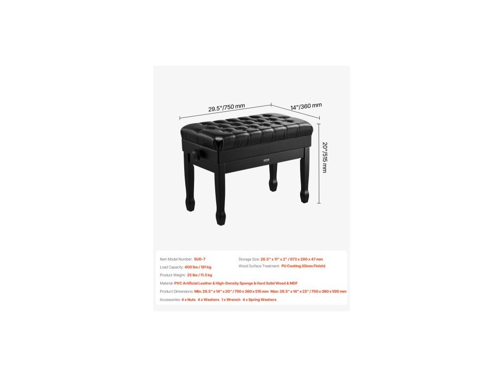 Min.: 750 x 360 x 515 mm,Rozměry úložného prostoru: 673 x 290 x 47 mm,Nosnost: 181 kg,Max.: 750 x 360 x 595 mm,Číslo modelu položky: SUD-7,Hmotnost výrobku: 11,5 kg,Materiál: PVC umělá kůže a houba s vysokou hustotou a tvrdé masivní dřevo a MDF, povrchová úprava dřeva: PU lak (lesklý povrch), rozměry produktu: