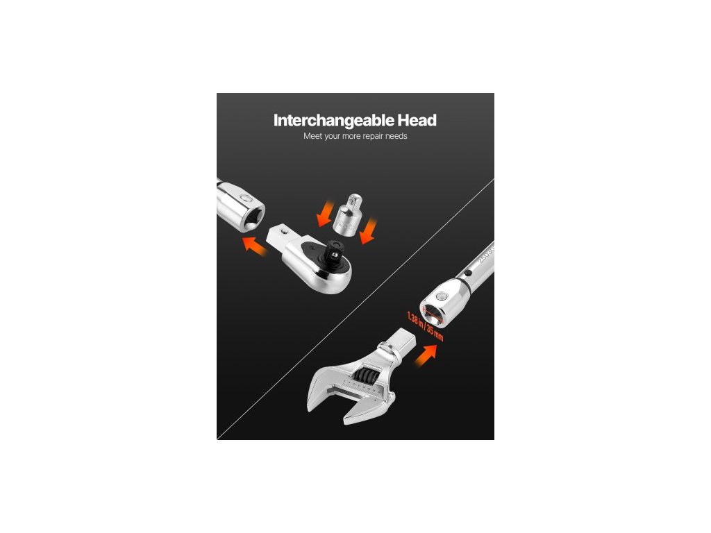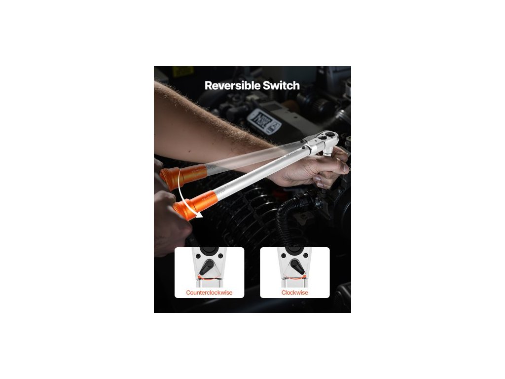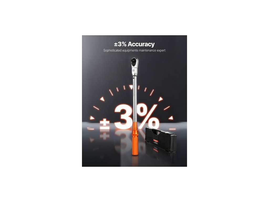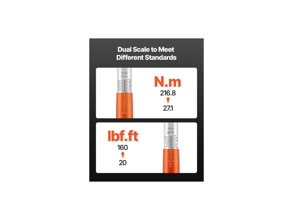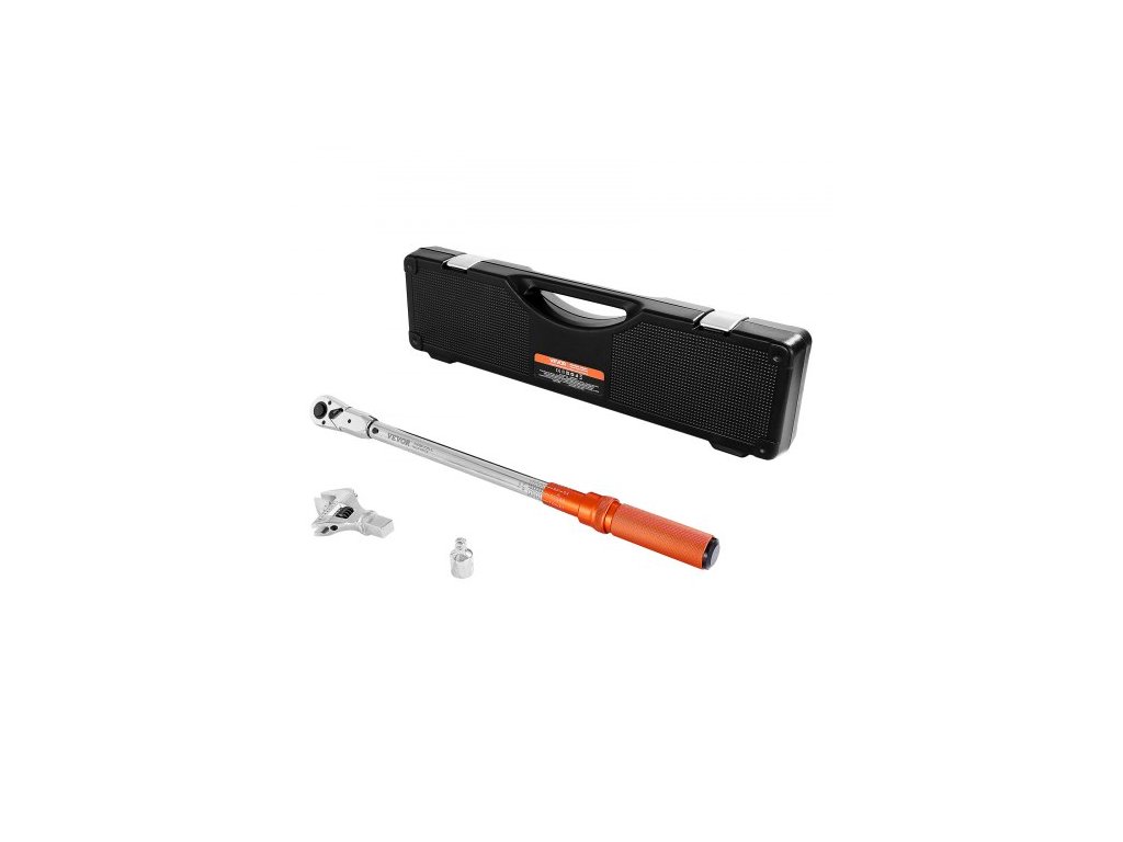 Momentový klíč Click s nastavitelným utahovacím momentem, pohon 1/2 palce, 20–160 lbf-ft/27,1–216,8 N.m, stupnice s dvojitým směrem a dvojitým rozsahem, 72 zubů, přesnost ±2 %, s adaptérem, vyměnitelnou čelistí a ráčnovou hlavouVysoká přesnost ±2 %